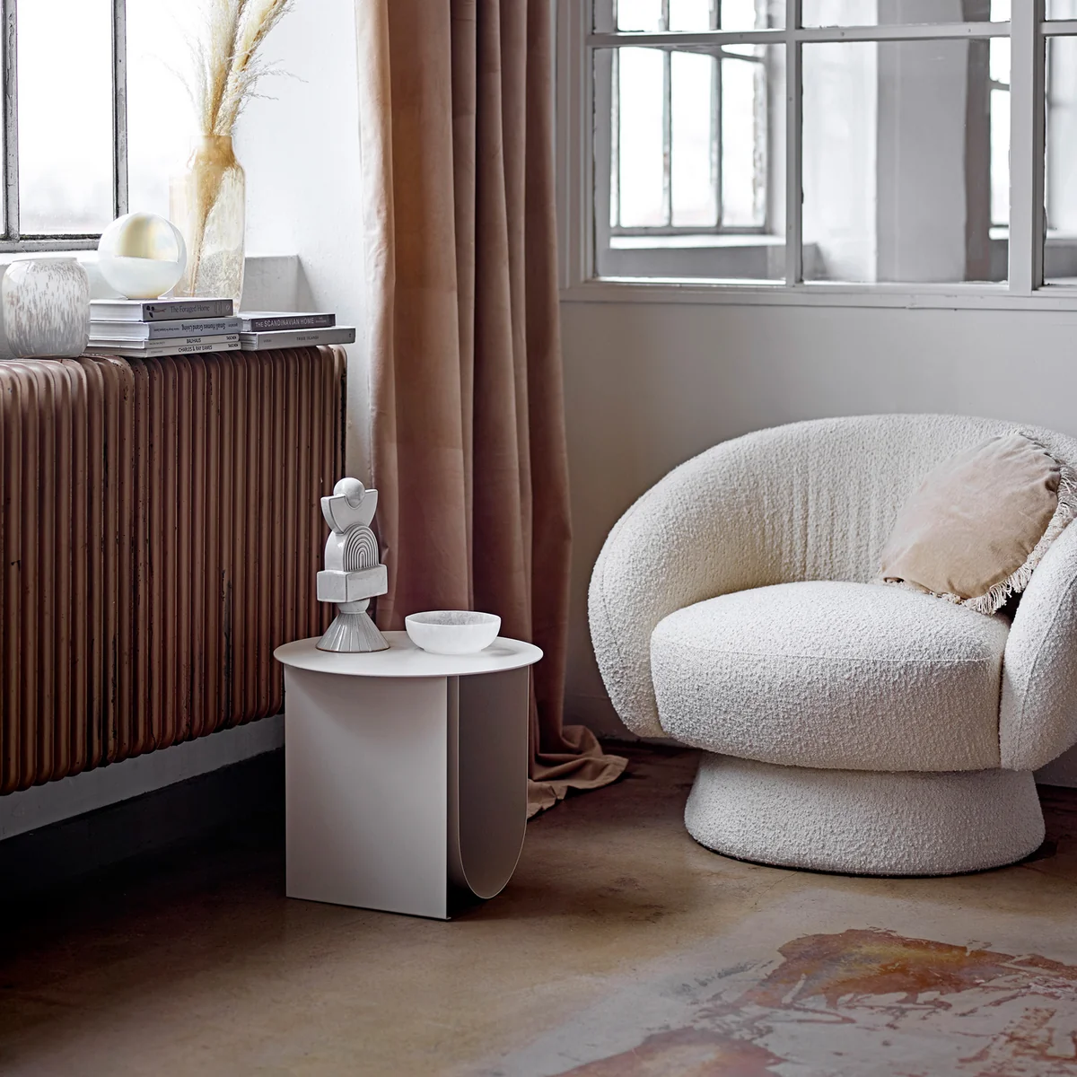 Der Cher Beistelltisch wird aus Metall gefertigt und ist in einem dezenten Grau-Ton pulverbeschichtet. Er ist für eine Last bis zu 10 Kilogramm ausgelegt.