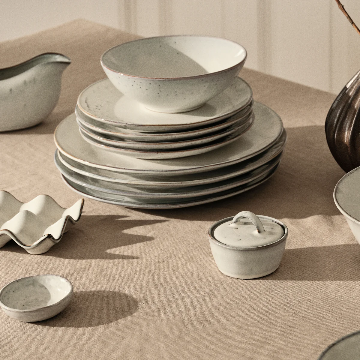 Die unregelmässige Glasur erinnert an den Sand, der über den Strand fegt und die windgepeitschten Wellen des nordischen Meeres. So schafft man eine skandinavische Note auf dem Esstisch und erzeugt echtes Urlaubsfeeling.
