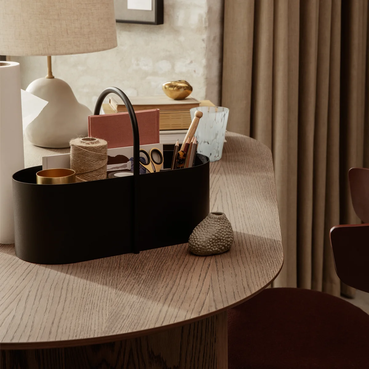 Die Grib Toolbox von Ferm Living ist eine praktische Aufbewahrungs-Lösung für verschiedenste Bedürfnisse im Innen- und Aussenbereich. Der abgerundete Henkel liegt beim Transportieren gut in der Hand und dank des perforierten Bodens kann Flüssigkeit im Inneren des Behälters besser abfliessen.