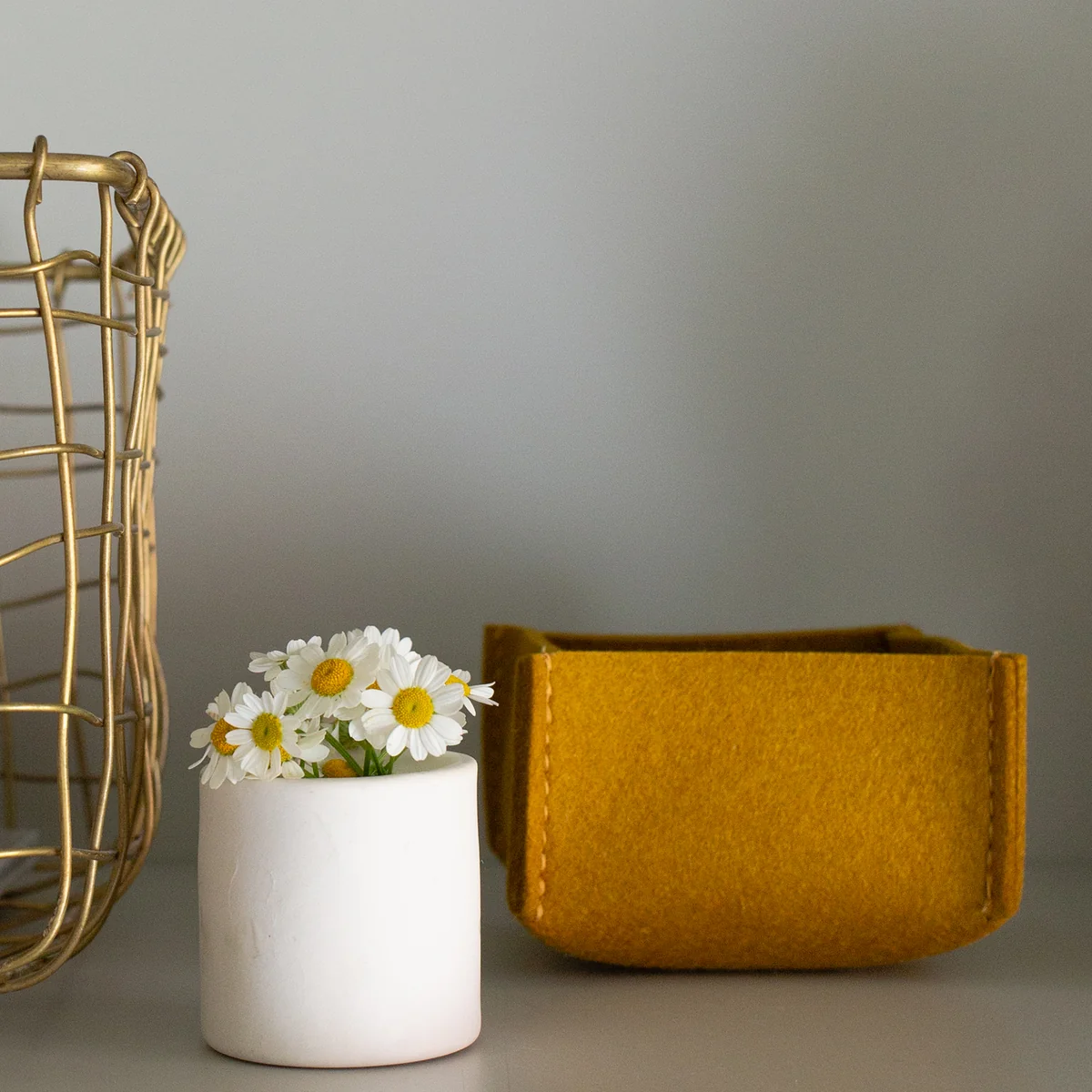 Dekorativ im Eingangsbereich platziert können in den Filzboxen Schlüssel und Briefe abgelegt werden, aber auch Schmuck, Nähgarn und allerlei andere Kleinigkeiten können in den Filzkörben von Hey Sign dekorativ verstaut werden.