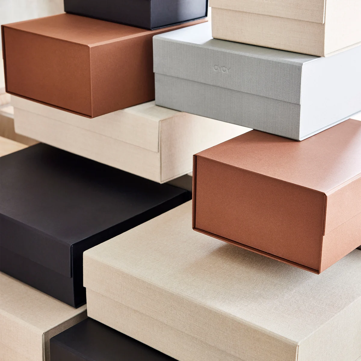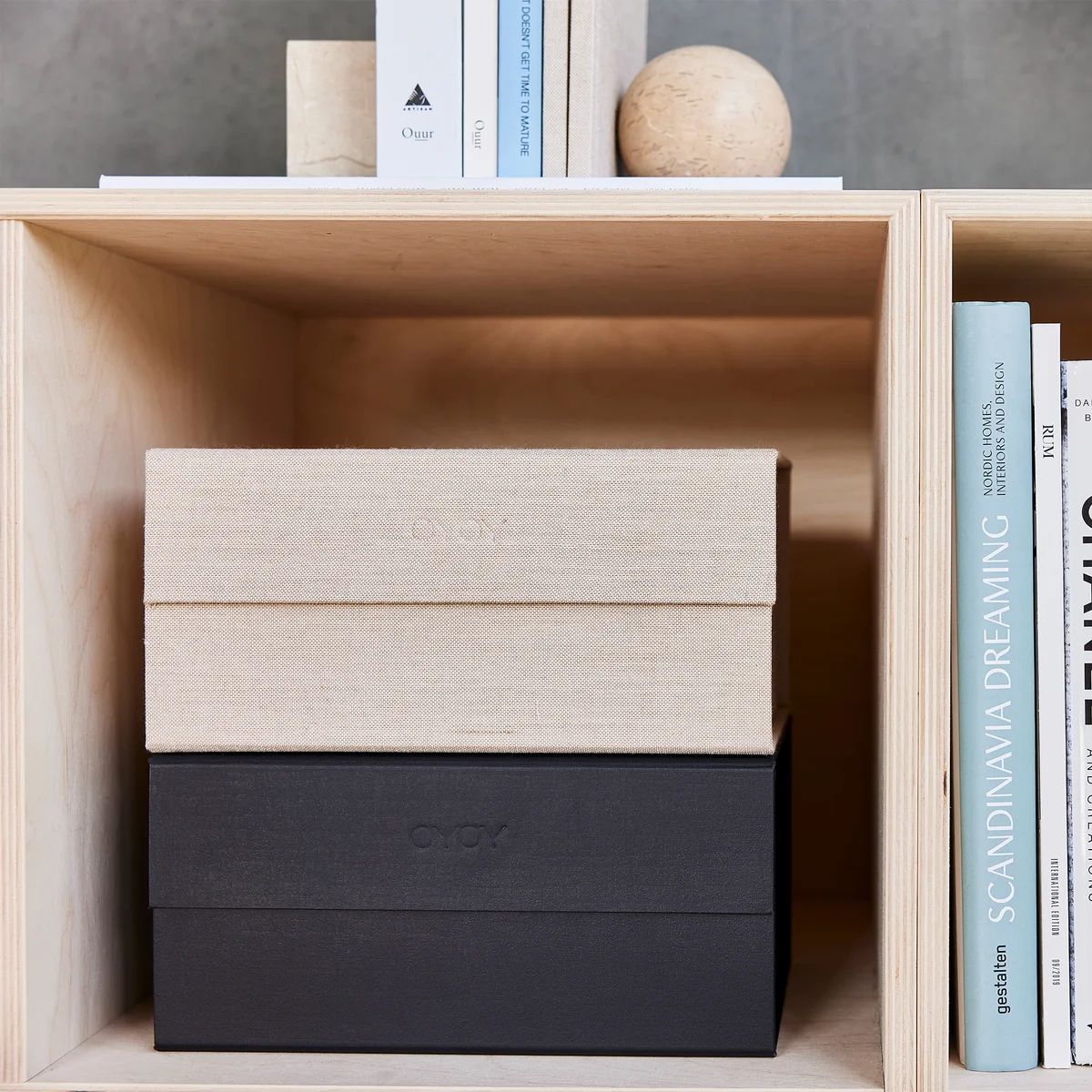 Die Hako Aufbewahrungsbox besteht aus strapazierfähigem und leicht zu reinigendem Stoff, der für seine Langlebigkeit geschätzt wird. Das Material ist sorgfältig ausgewählt, um sicherzustellen, dass die Gegenstände gut geschützt sind. Das Design der Hako Aufbewahrungsbox ist typisch skandinavisch - schlicht, elegant und funktional. Die neutralen Farben und klaren Linien passen zu verschiedenen Einrichtungsstilen und verleihen dem Raum eine zeitgemässe Note.