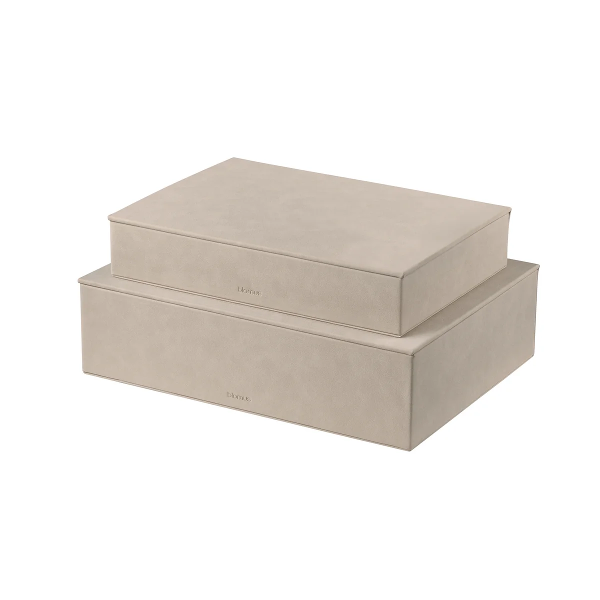 Dank des Deckels lassen sich die Boxen sicher verschliessen, sodass ihr Inhalt geschützt bleibt und gleichzeitig für eine aufgeräumte Optik gesorgt ist. Der Bezug aus PU-Wildleder verleiht den Boxen eine hochwertige Ausstrahlung, die sowohl auf dem Schreibtisch als auch in Regalen oder Schränken zum Hingucker wird.