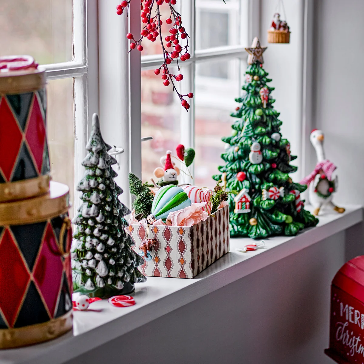Die Yuri Box mit Deckel von Bloomingville ist ein dekoratives Set aus zwei trommelförmigen Boxen in klassischen Weihnachtsfarben. Ob als Aufbewahrung für kleine Accessoires oder als stimmungsvolle Dekoration – die Boxen lassen sich vielseitig einsetzen und sorgen für festliche Akzente im Wohnraum.