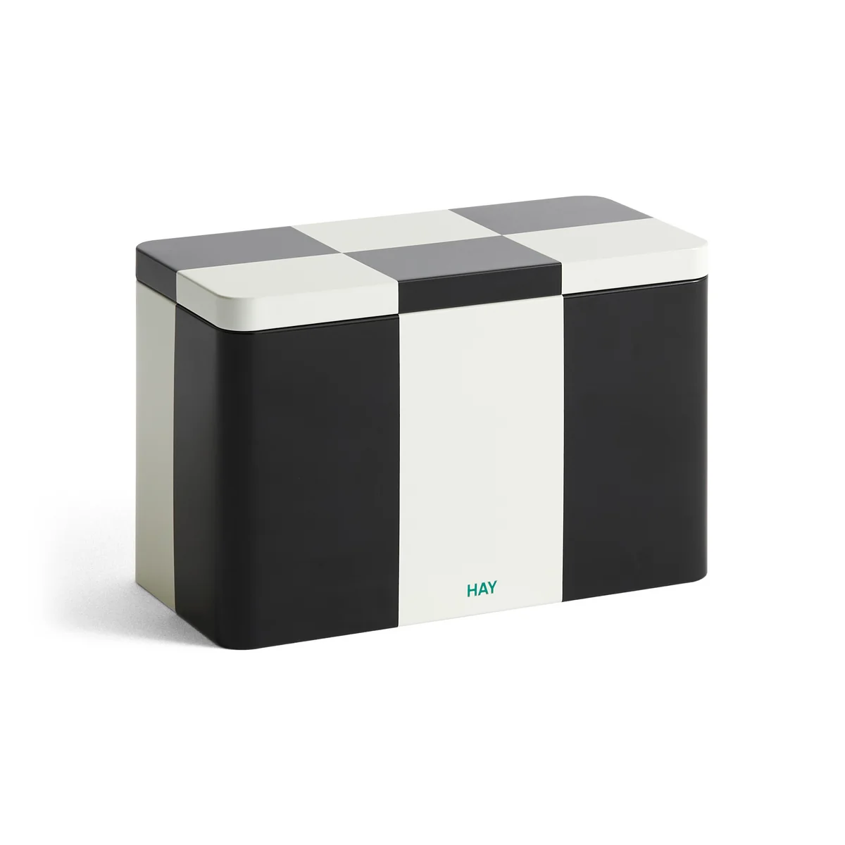 HAY's Tin Container sind sowohl funktionale als auch dekorative Aufbewahrungsboxen, die sich durch ihre bunten Muster und ihre glänzende Oberfläche auszeichnen. Deckel und Behälter gehen nahtlos ineinander über und bieten ein elegantes, nahtloses Aussehen und einen luftdichten Verschluss, wodurch sie sich ideal für die Aufbewahrung trockener Lebensmittel eignen.