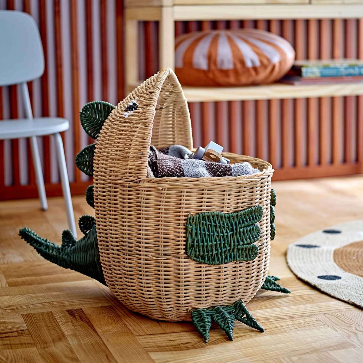 Vorsicht! Der gefrässige Eddi Aufbewahrungskorb frisst die Lieblingsspielzeuge auf. Als Spass für die Familie im Kinderzimmer oder Schlafzimmer ist der Eddi Aufbewahrungskorb super geeignet. Der Korb kann als Stauraum für Spielzeuge, Wäsche oder Kuscheltiere genutzt werden. An dem Körper aus Ratten sind kleine Details aus grünem Filz angebracht, damit der Korb aussieht wie ein gefrässiger Dinosaurier.