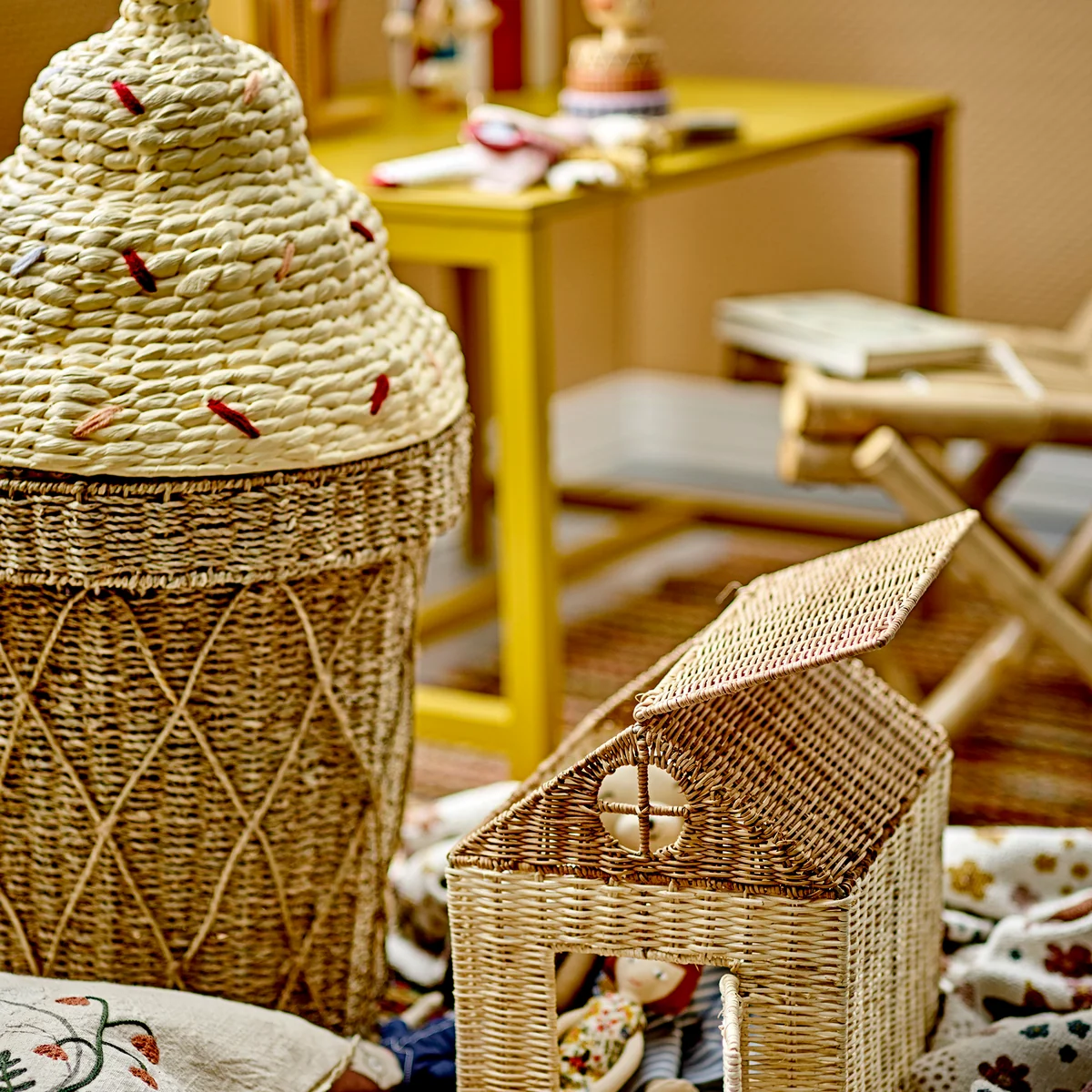 Der Cillie Korb mit Deckel von Bloomingville Mini ist nicht nur ein funktionales Aufbewahrungselement, sondern auch ein entzückendes Designstück, das das Kinderzimmer in ein süsses Waffeleis-Abenteuer verwandelt. Mit seiner verspielten Form und den bunten Streuseln oben drauf, regt dieser Korb die Fantasie der Kleinen an. Er bietet grosszügigen Stauraum für Spielzeug, Bücher und andere Schätze und verleiht gleichzeitig dem Raum eine spielerische und dekorative Note. Der abnehmbare Deckel erleichtert den Zugriff auf die Inhalte und ermöglicht es kleinen Händen, ihre Lieblingsgegenstände bequem zu erreichen und aufzuräumen. Der Cillie Korb ist somit eine perfekte Kombination aus Spass und Funktionalität im Kinderzimmer.