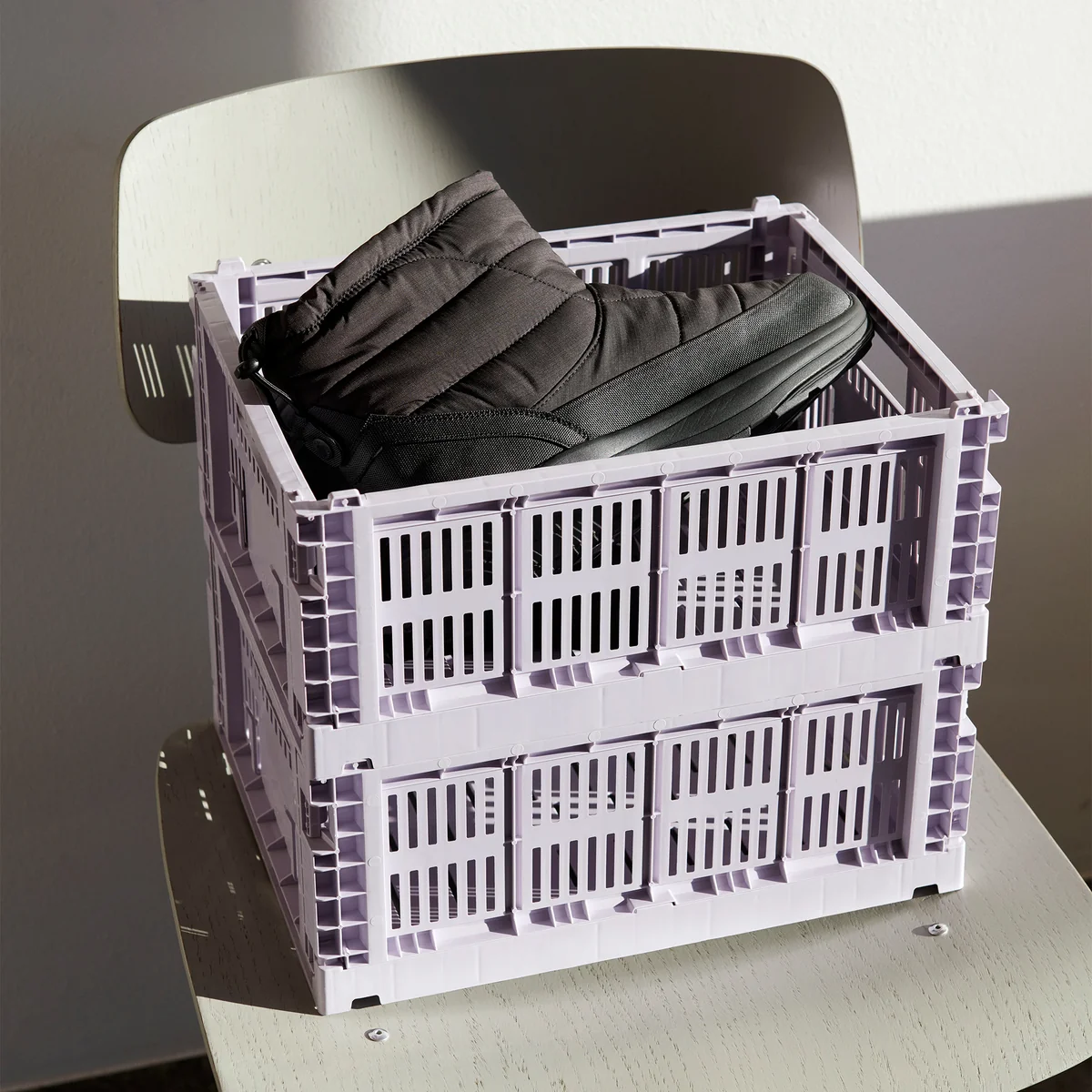Der Colour Crate Korb recycled von HAY ist ein besonderes Stück der gleichnamigen Serie von multifunktionalen Aufbewahrungsboxen in einer Vielzahl von verschiedenen Farben und Grössen. Mit einem belüfteten und stapelbaren Design, sind die Kisten sicher für die Verwendung mit Lebensmitteln.