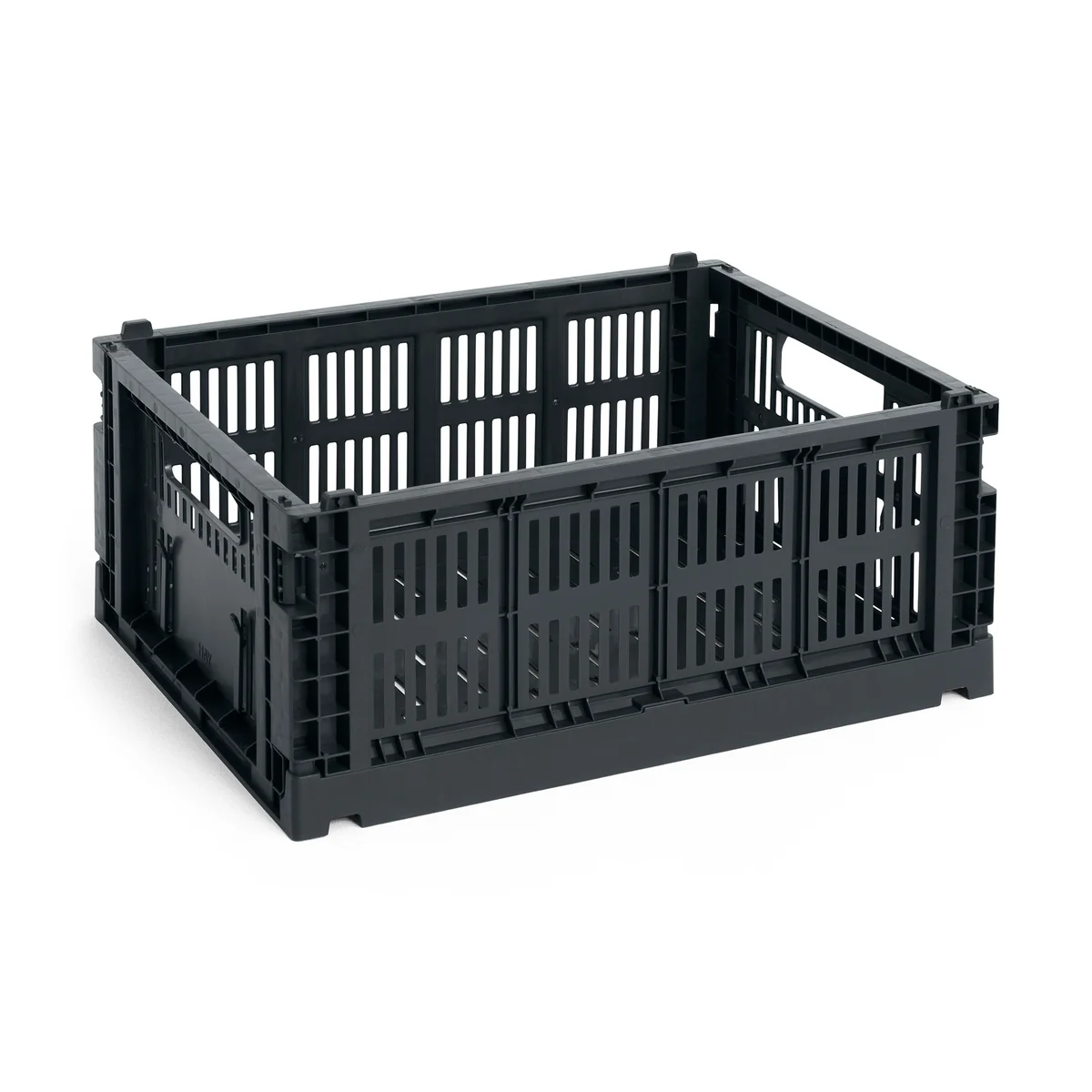 Der Colour Crate Korb recycled von HAY ist ein besonderes Stück der gleichnamigen Serie von multifunktionalen Aufbewahrungsboxen in einer Vielzahl von verschiedenen Farben und Grössen. Mit einem belüfteten und stapelbaren Design, sind die Kisten sicher für die Verwendung mit Lebensmitteln.