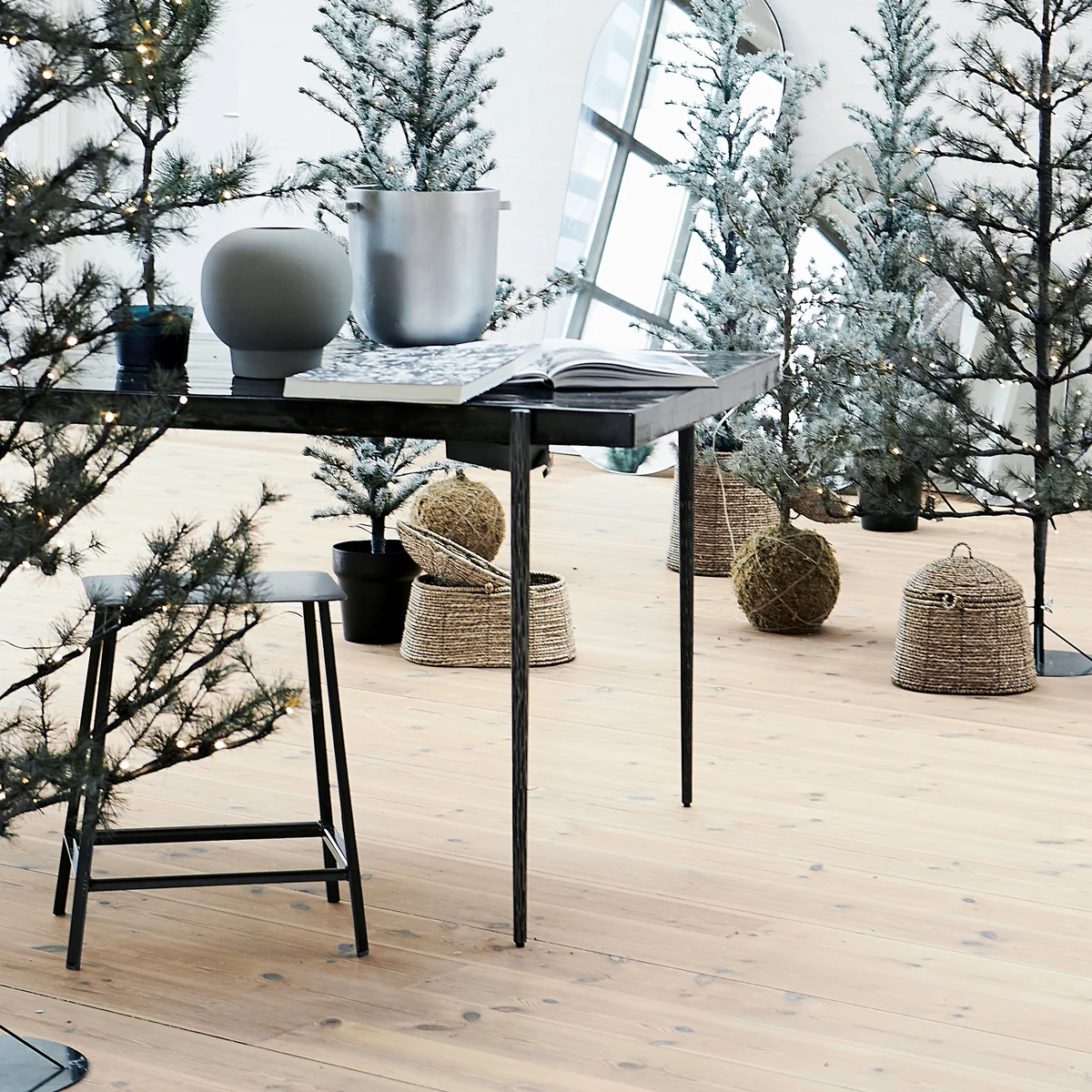 Der Rama Korb mit Deckel von House Doctor erhält sein Aussehen durch Kordeln aus gedrehtem Seegras, die auf ein Gestell aus Metall geflochten werden. Das verleiht dem Korb einen naturbelassenen und rohen Look, der ihn zum heimlichen Star jeder Inneneinrichtung macht.