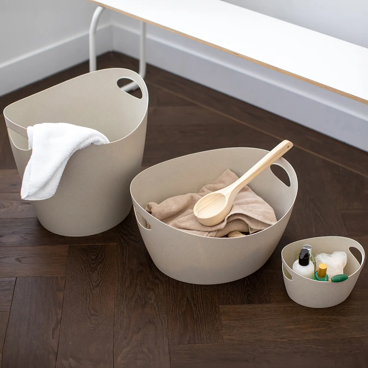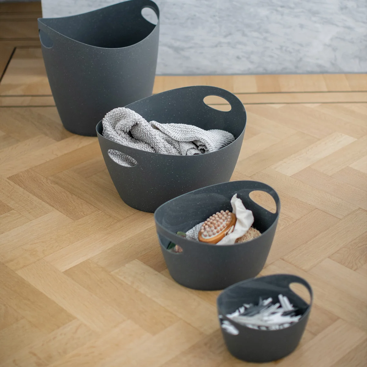 Der Bottichelli Utensilo (Recycled) Aufbewahrungskorb von Koziol begeistert mit seiner simplen Optik und seiner hohen Funktionalität. Greift man den Korb an seinen Griffen, so erhält der Korb einen ovalen Schwung. Je nach Anwendung verändert der Bottichelli Utensilo spielerisch seine Form. Ob im Innen- oder Aussenbereich, der Aufbewahrungskorb kann optimal nach Ihren Bedürfnissen eingesetzt werden. Allerlei Kleinigkeiten wie Wäscheklammern, Schmuck oder Wattepads können in den Körben gelagert werden.