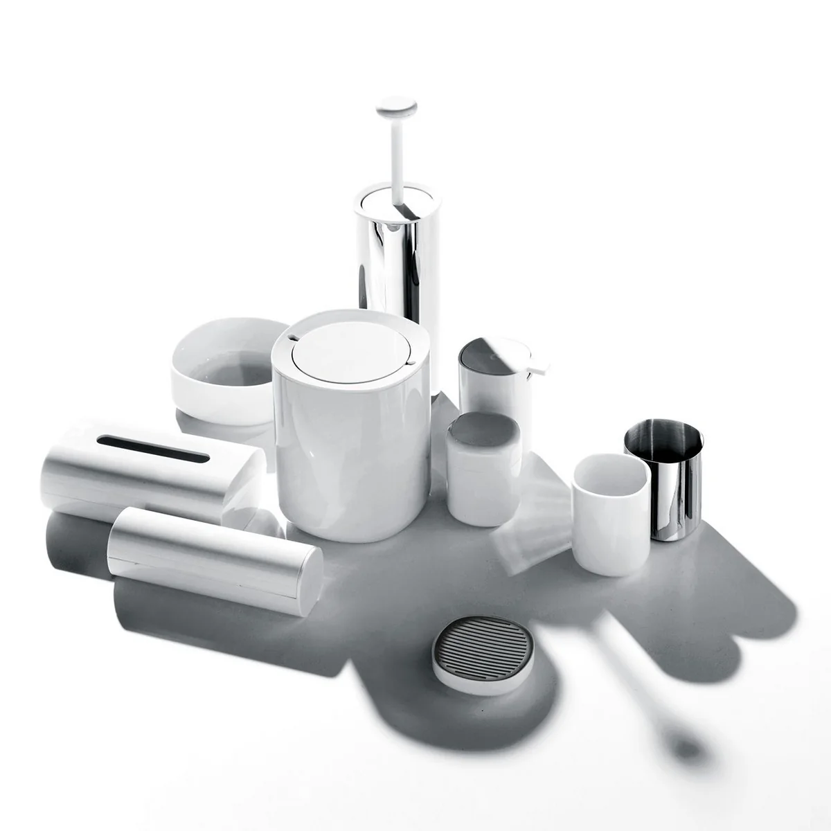 Die WC-Bürste überzeugt alleine oder im Ensemble der Birillo-Kollektion mit seiner seichten Linienführung, seiner eleganten Schlichtheit und den Eigenschaften, die die Produkte von Piero Lissonis Birillo von der Masse der Badezimmer-Accessoires abheben: Durch die Abrundungen am Boden sind die Stellflächen nicht sichtbar, die Objekte der Familie scheinen zu schweben, sich auf den glatten Flächen des Badezimmers treiben zu lassen.