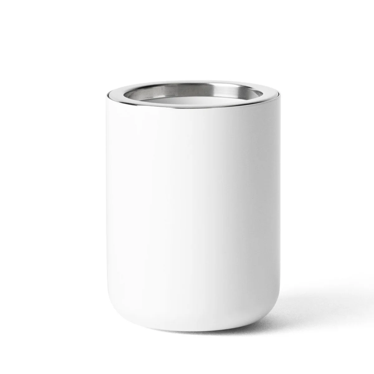 Die äussere Hülle besteht aus weiss bzw. schwarz lackiertem Stahl und sorgt für eine edle Anumtung, die sich in nahezu jedes Badezimmerambiente einfügt. Der Zahnputzbecher ist leicht zu reinigen, da die Kunststoffteile im Inneren einfach entnommen werden können. Zudem bietet der Zahnbürstenhalter dank eines Gummirings am Boden einen sicheren, rutschfesten Stand.