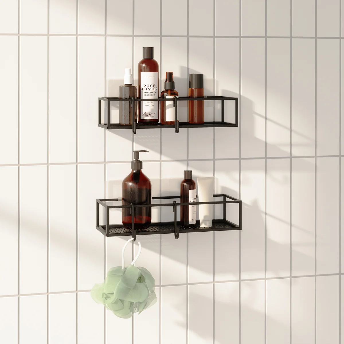 Die Cubiko Duschablage wird aus rostfreiem Metall hergestellt und verfügt über zwei Metallhaken für kleine Handtücher oder Peelingschwämme. In unterschiedlichen Ausführungen erhältlich.