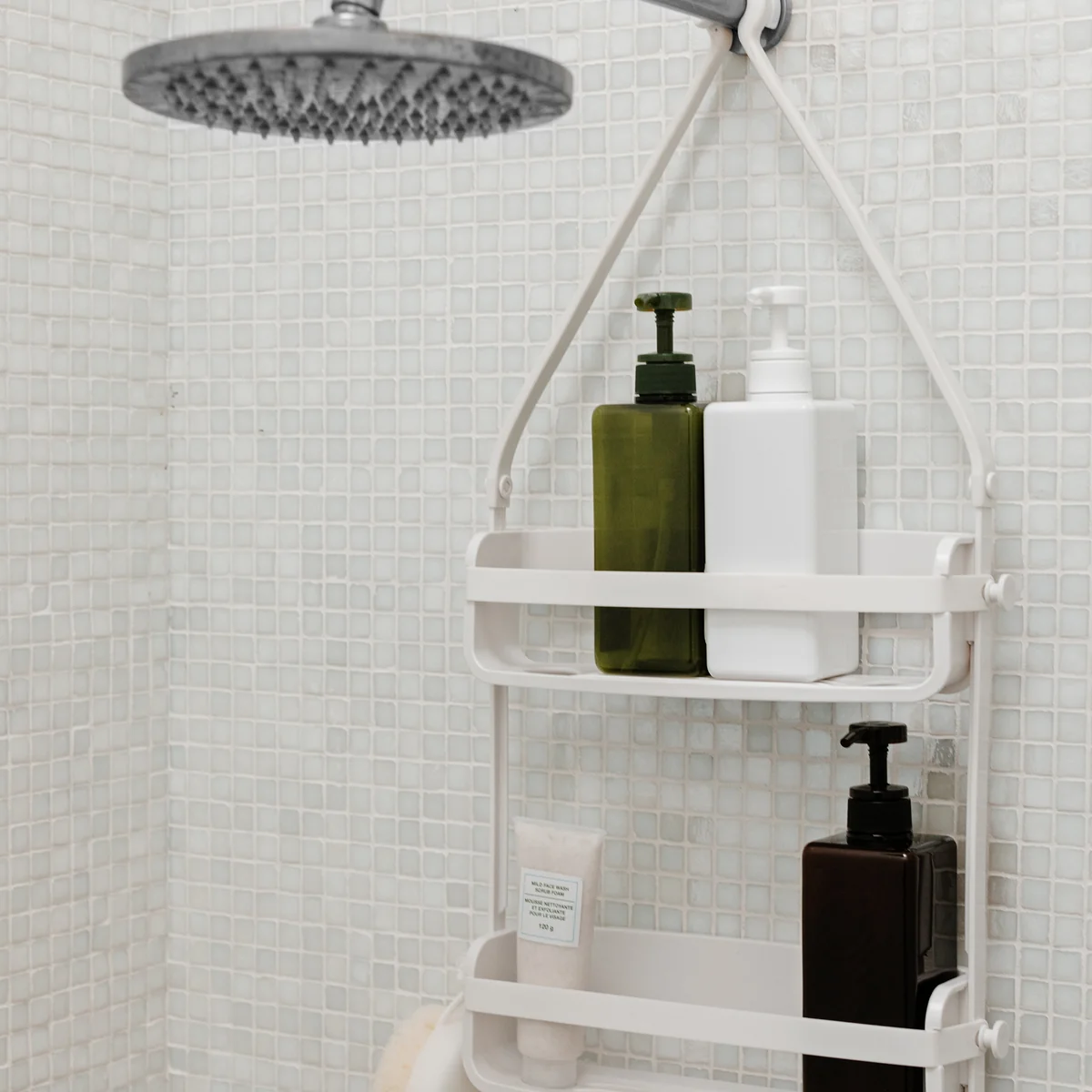 Die Flex Duschablage von Umbra ist ein hochfunktioneller Caddy für die Dusche. Flex wurde entwickelt, um in der Dusche möglichst wenig Platz zu beanspruchen und dennoch grössere Flaschengrössen unterzubringen. Die Duschablage besteht aus einem starren Kunststoffrahmen und ist mit flexiblen Silikonbändern ausgestattet, die eine Vielzahl von Aufbewahrungsmöglichkeiten bieten. Die Ablage verfügt ausserdem über extra breite Kunststoffablagen, auf denen Shampoo, Spülung und Körperpflegemittel Platz finden, während die Haken perfekt für Schwämme und Rasierklingen geeignet sind.