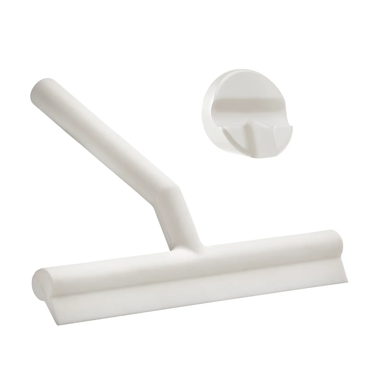 Der Abzieher wird mit einem speziellen Haken geliefert, der selbstklebend an den Fliesen befestigt werden kann. So besteht kein Montageaufwand und die Halterung kann jederzeit ohne Rückstände entfernt werden. Ein leichter, unsichtbarer Magnet im Abzieher unterstützt den Halt am Haken, wodurch ein nahezu schwebender Eindruck vermittelt wird.