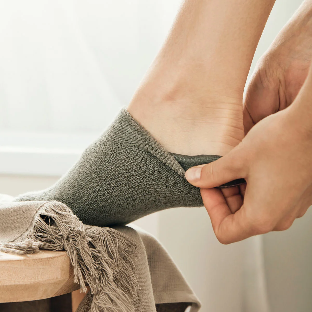 - Füsse grosszügig eincremen und die Socken anziehen.