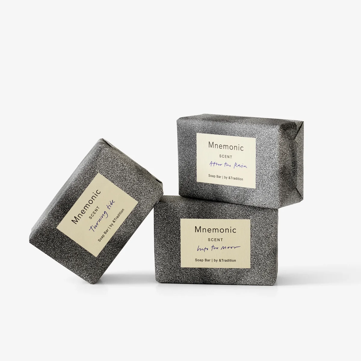 Das Mnemonic MNC3 Seifenstück von &Tradition ist ein Fest der Erinnerung. Die Mnemonic Kollektion charakterisiert raffiniert duftende Produkte, die auf natürlichen Inhaltsstoffen basiert. Die Düfte wecken Erinnerungen an die wilde Natur und Rohstoffe in einer ehrlichen Erkundung der Sinne, basierend auf Assoziationen und Vertrautheit.