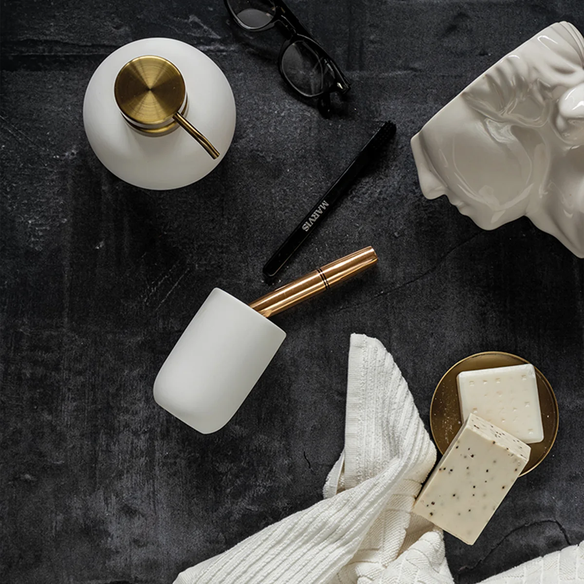 Der Lotus Seifenspender von Mette Ditmer besticht mit seinem klassischen und zeitlosen Design. Gefertigt aus Keramik mit Gummiüberzügen und Details aus Messing wird dem Produkt ein exklusives Finish verliehen. Der Pumpspender kann für Seife im Bad oder Spülmittel in der Küche verwendet werden. Der Lotus Seifenspender von Mette Ditmer in mehreren Grössen erhältlich und wird ausschliesslich per Hand gereinigt.