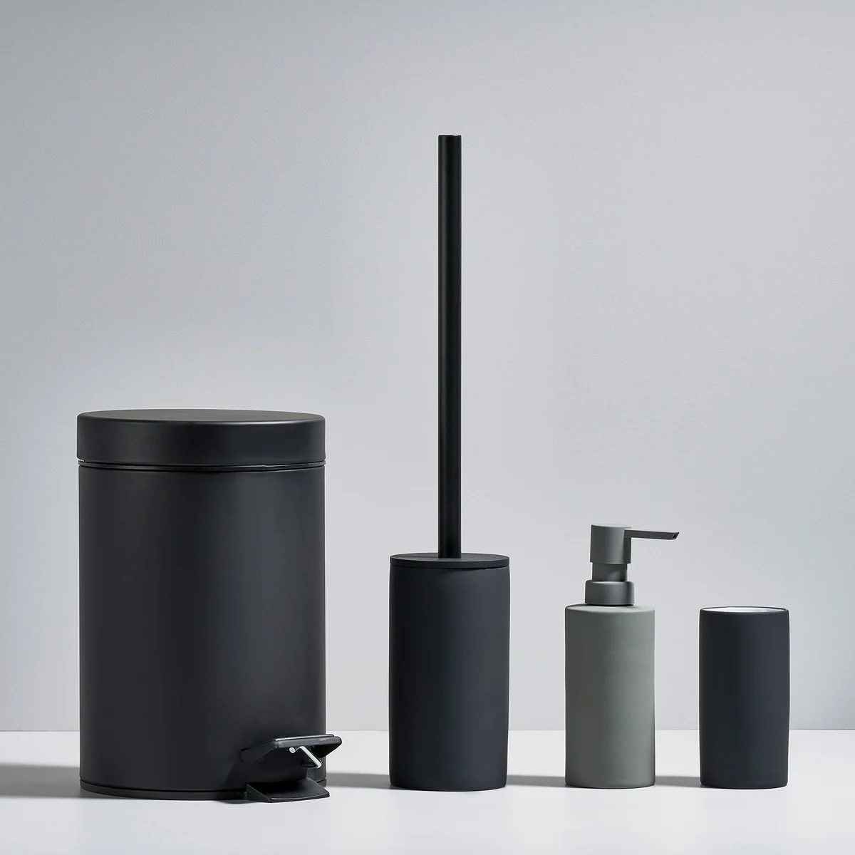 In verschiedenen Farben erhältlich, gehören neben der Toilettenbürste auch ein Zahnbürstenbecher und ein Pedaleimer zu der Serie. Ein Ersatz-Bürstenkopf ist separat erhältlich.