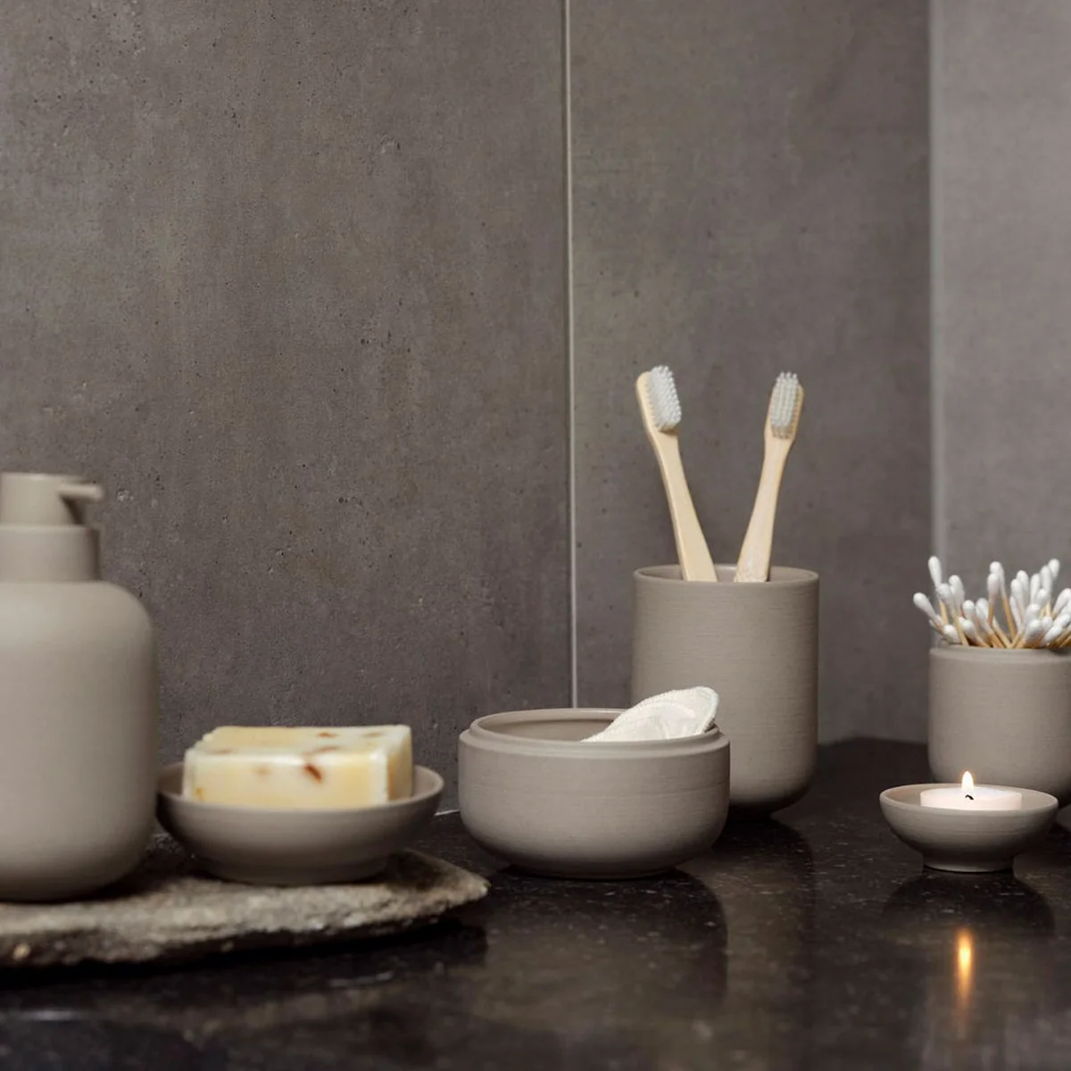 Dieser Zahnputzbecher aus der japanisch inspirierten Sensu-Serie überzeugt mit klaren Linien und sanften Rundungen. Gefertigt aus hochwertigem Steinzeug, sorgt sein Gewicht für Stabilität, während das zeitlose Design sich harmonisch in jede Badezimmereinrichtung einfügt. Vielseitig einsetzbar, eignet er sich nicht nur für Zahnbürsten, sondern auch für Schminkpinsel oder Rasierer.