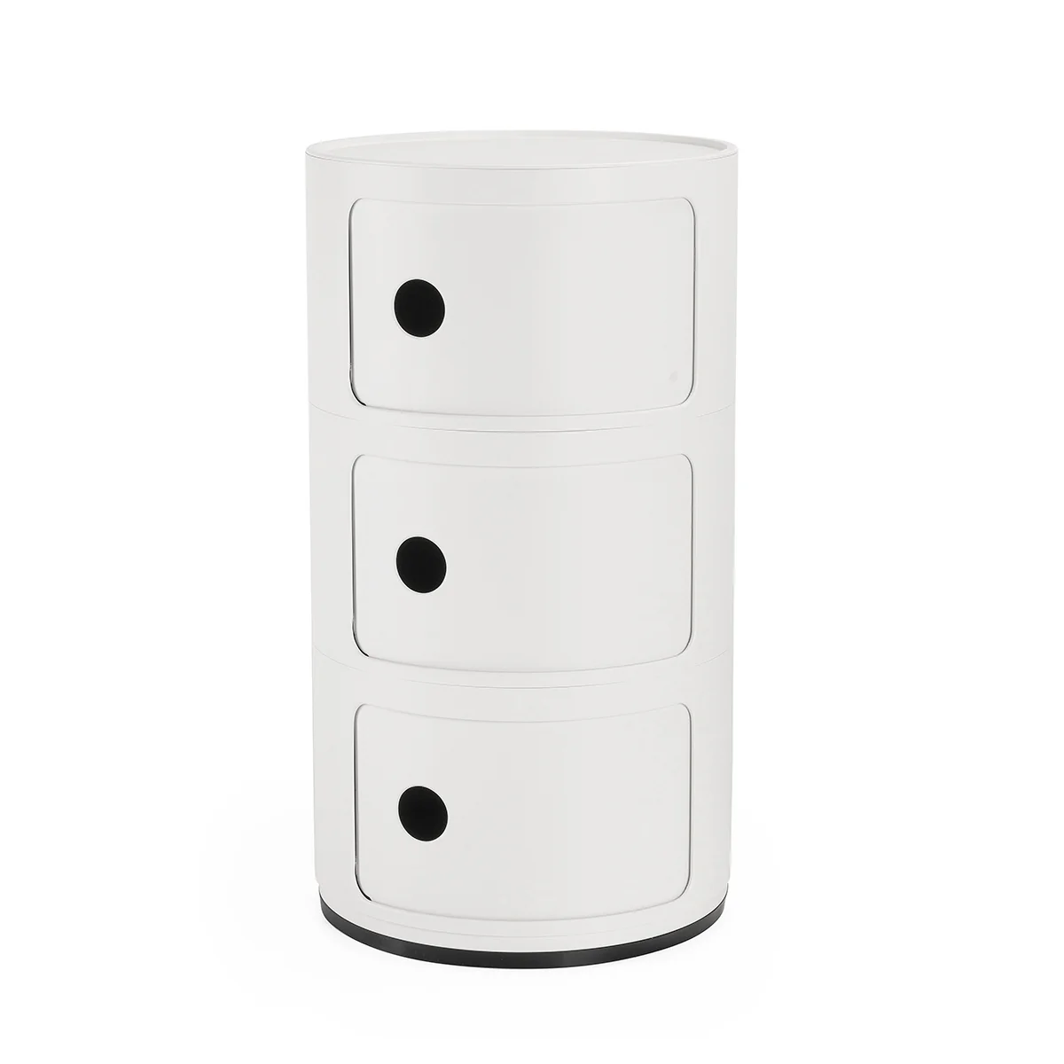 Der Componibili 4988 rund mit 3 Fächern gehört zu den beliebten Designklassikern, die Anna Castelli Ferrieri für den Hersteller Kartell entworfen wurde. Das schlichte und elegante Design mit einem Matt-Finish fügt sich problemlos in jedem Wohnambiente ein. Im Bad, im Schlafzimmer, in der Küche und im Wohnzimmer ebenso wie im Kinderzimmer bietet der Container ausreichend Platz, um diverse Gegenstände aufzubewahren.