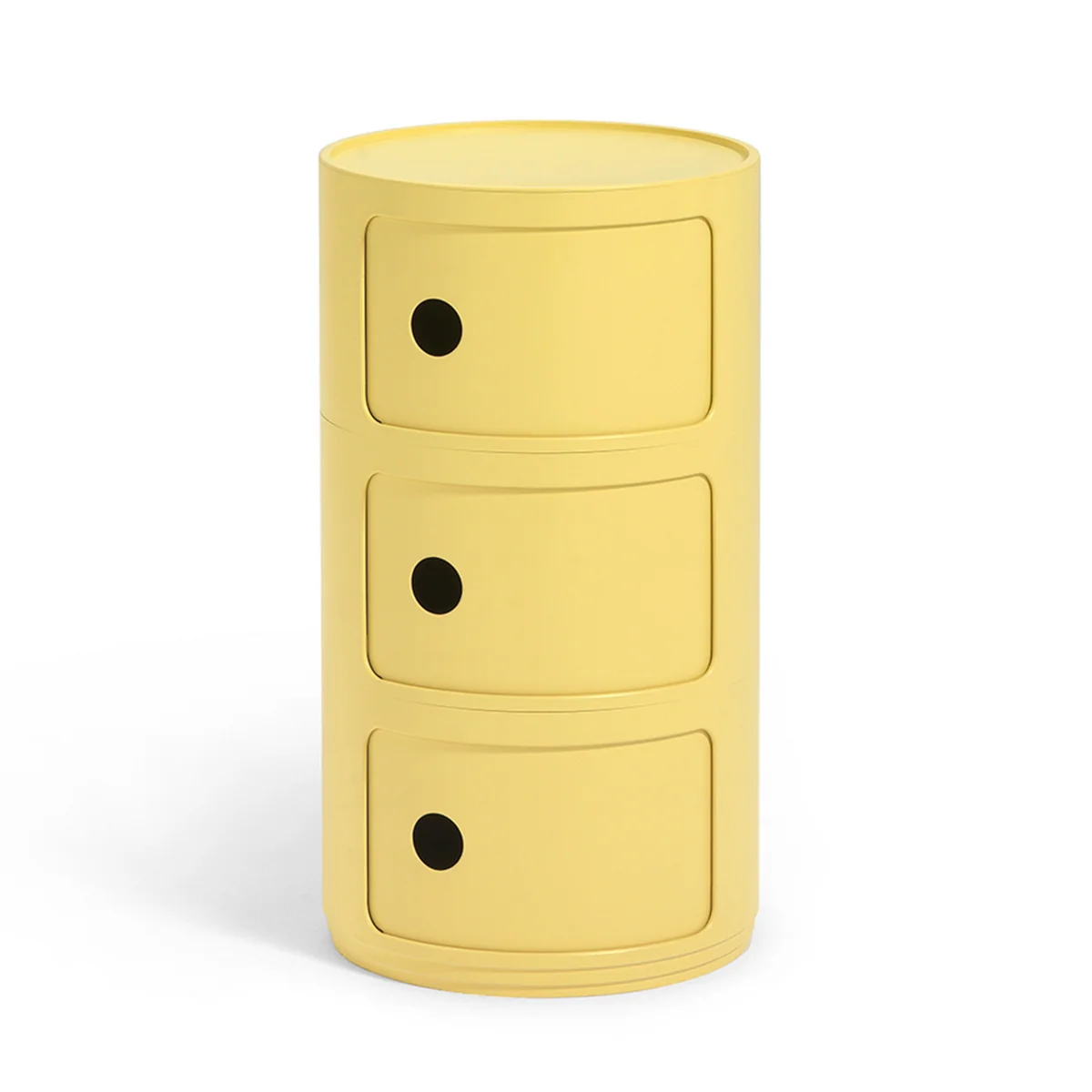 Die Componibili von Kartell wurden bereits 1969 von Anna Castelli Ferrieri entworfen und zählen heute zu den bekanntesten Designs des italienischen Herstellers. Die Container können in allen Bereichen des Hauses Platz finden: im Bad, im Schlafzimmer, in der Küche und im Wohnzimmer ebenso wie im Kinderzimmer. Die Componibili sind Designklassiker mit jahrzehntelanger Tradition, die wegen der Prägnanz und Innovation der Gestaltung viel Anerkennung erlangt haben und längst in die ständige Ausstellung des Museums of Modern Art in New York und ins Centre George Pompidou in Paris gerollt sind.
