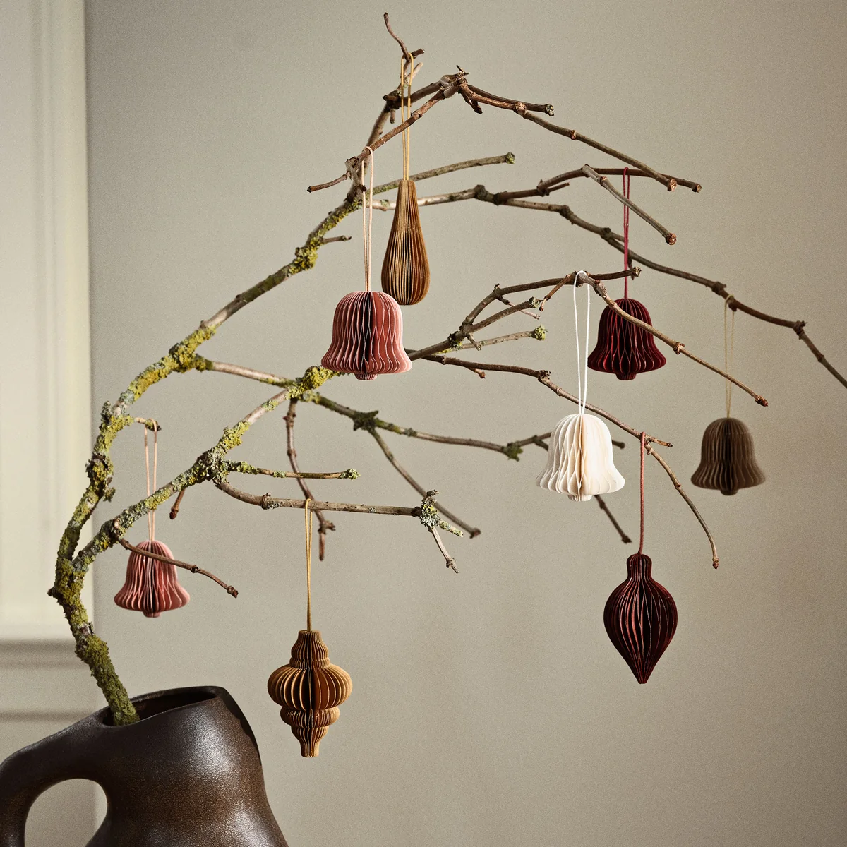 Die Chime Bell Deko-Anhänger von Broste Copenhagen verbinden Umweltfreundlichkeit mit festlichem Charme. Hergestellt aus Wabenstrukturen aus FSC-zertifiziertem Papier, präsentieren sich diese glockenförmigen Dekorationen in einer breiten Farbpalette. Sie sind ideal für jeden Dekorationsstil und verleihen der Weihnachtszeit eine bewusste Eleganz.