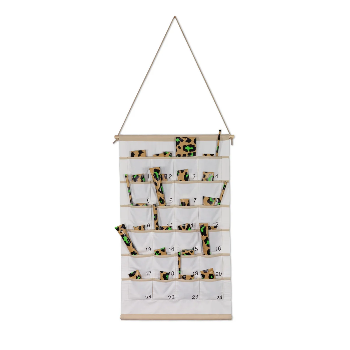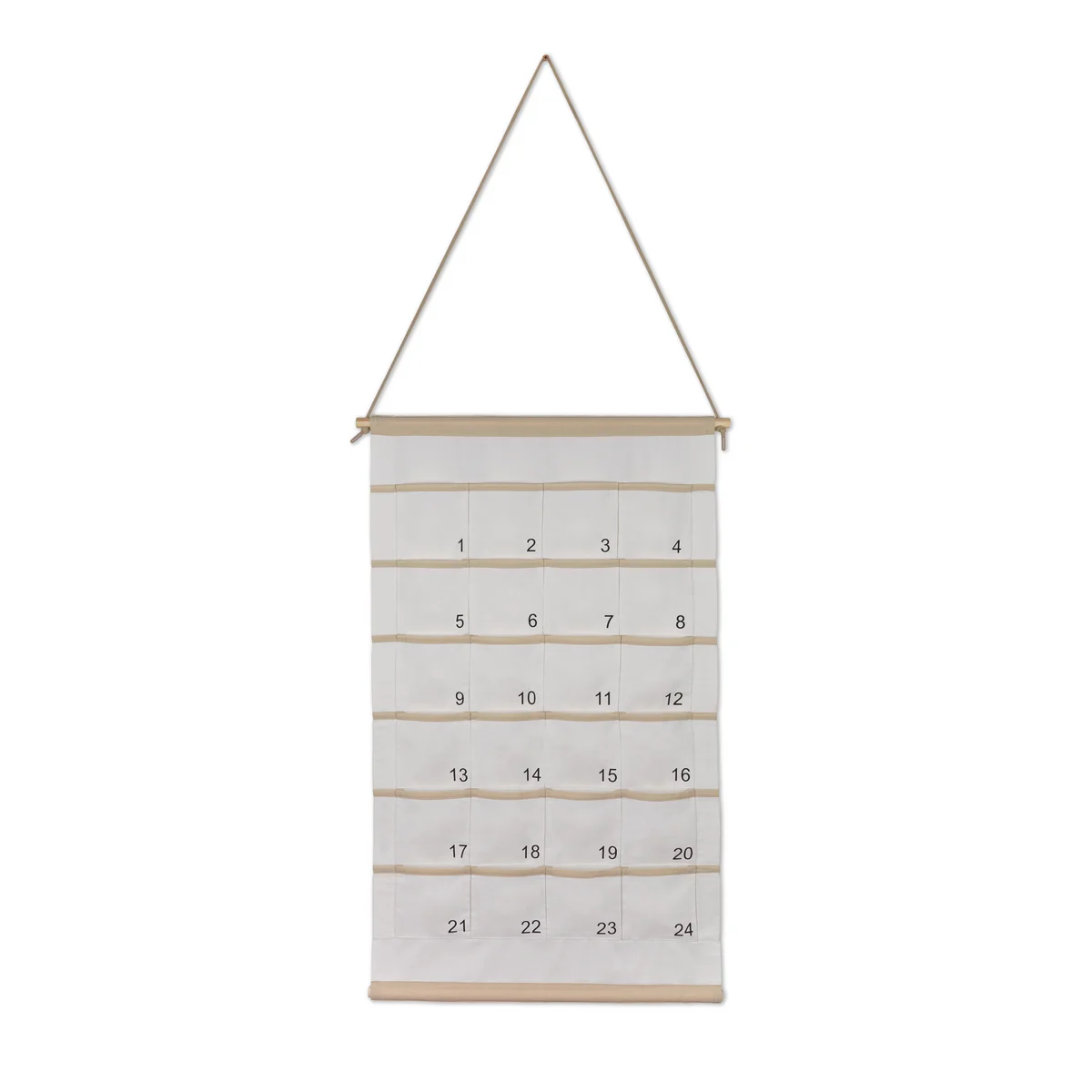 Der Stoff-Adventskalender aus der Collection ist das perfekte Geschenk, um auf die Weihnachtstage einzustimmen. Hergestellt aus 100% Baumwolle, ist der Adventskalender besonders stabil und belastbar. Der Kalender verfügt über Haltestangen aus Holz, die ihm eine moderne Boho-Optik zaubern. Durch kleine dekorative Elemente kann der Kalender individuell und konzeptorientiert gestaltet werden.