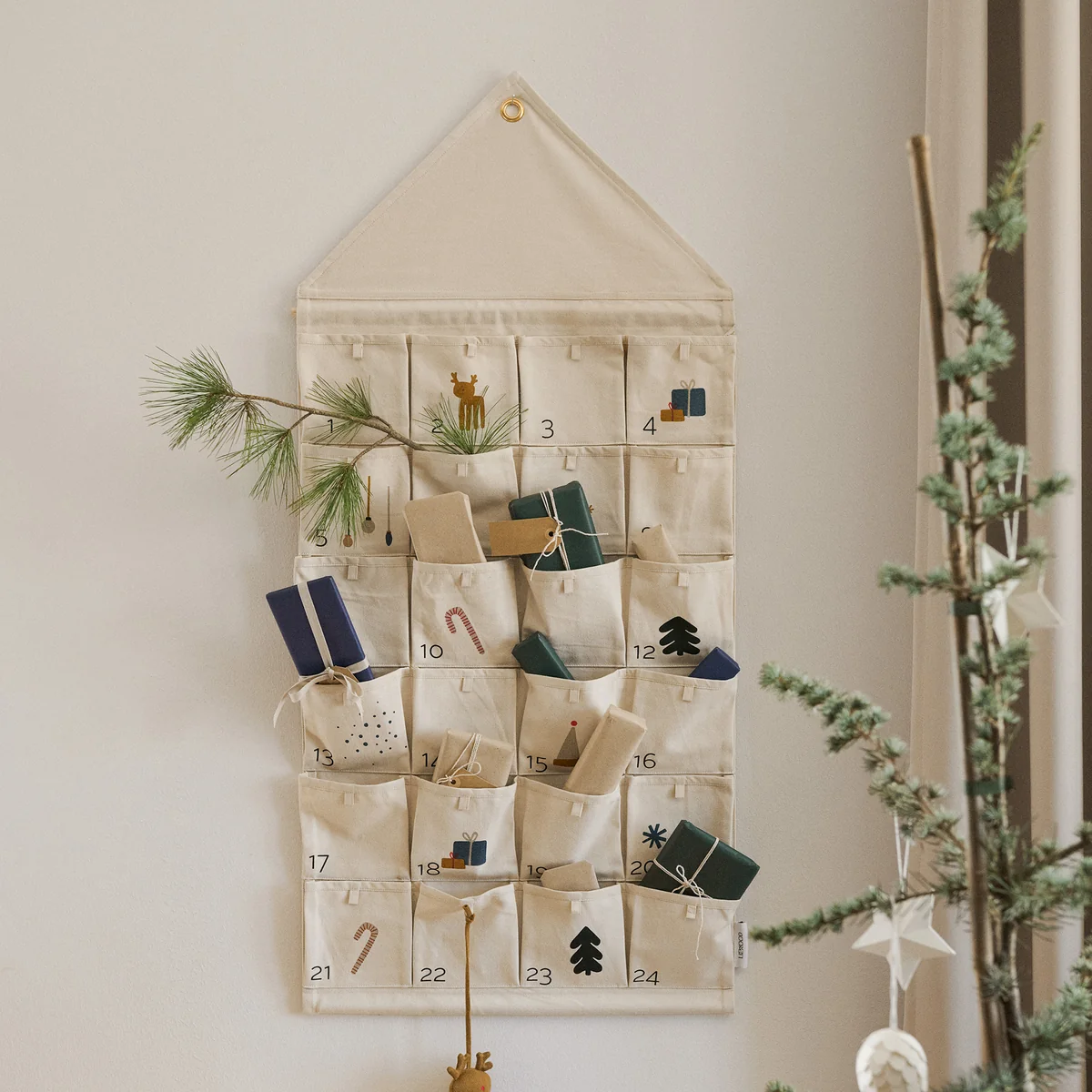 Wiederverwendbarer Adventskalender aus Bio-Baumwolle mit Taschen
