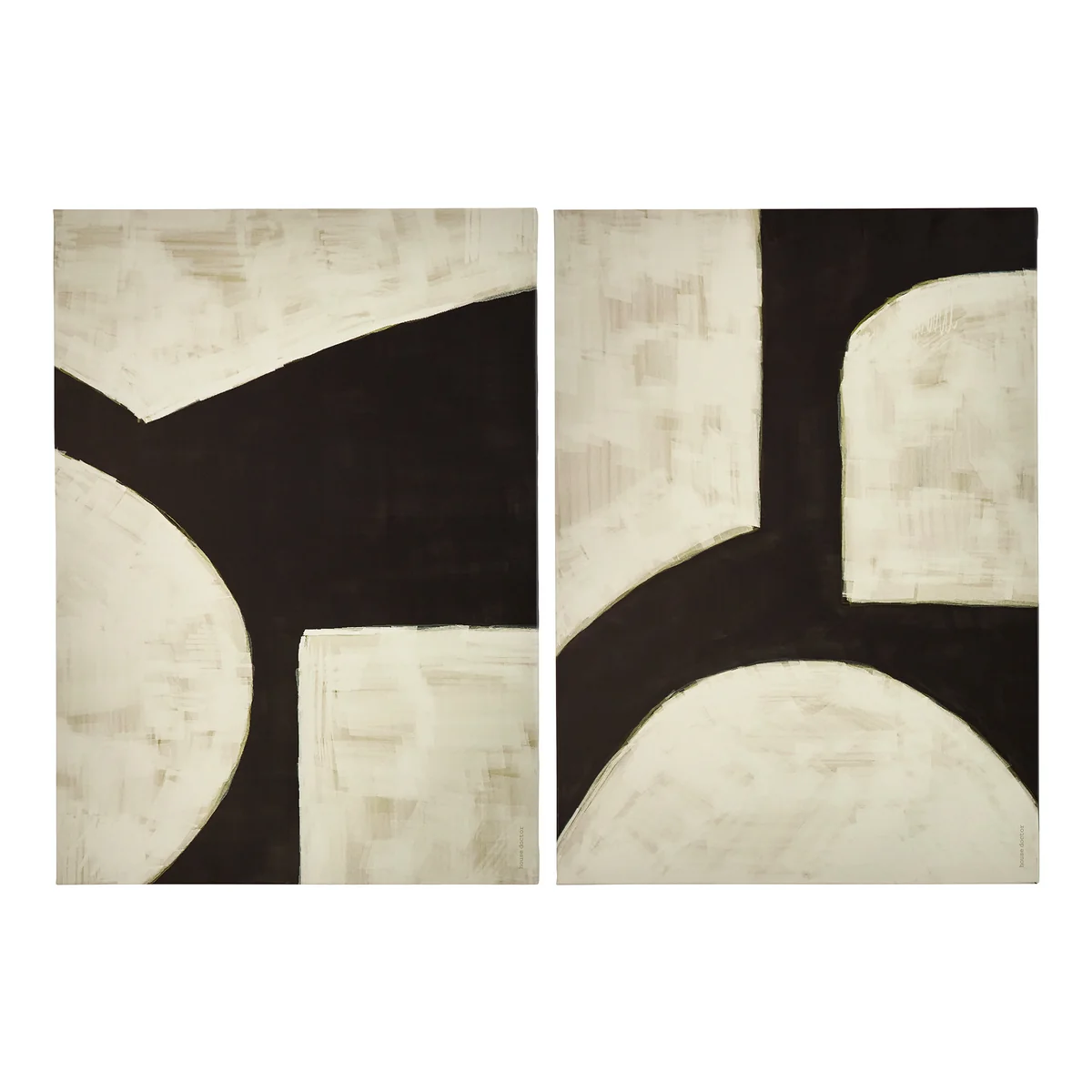 Dieses zweiteilige Wandkunst-Set bringt moderne Ästhetik in Wohn- oder Arbeitsräume. Die grafischen Motive in Schwarz und Off-White auf Leinwand fügen sich nahtlos in unterschiedliche Einrichtungsstile ein. Die minimalistischen Designs verleihen Räumen Charakter und eine zeitlose Ausstrahlung.