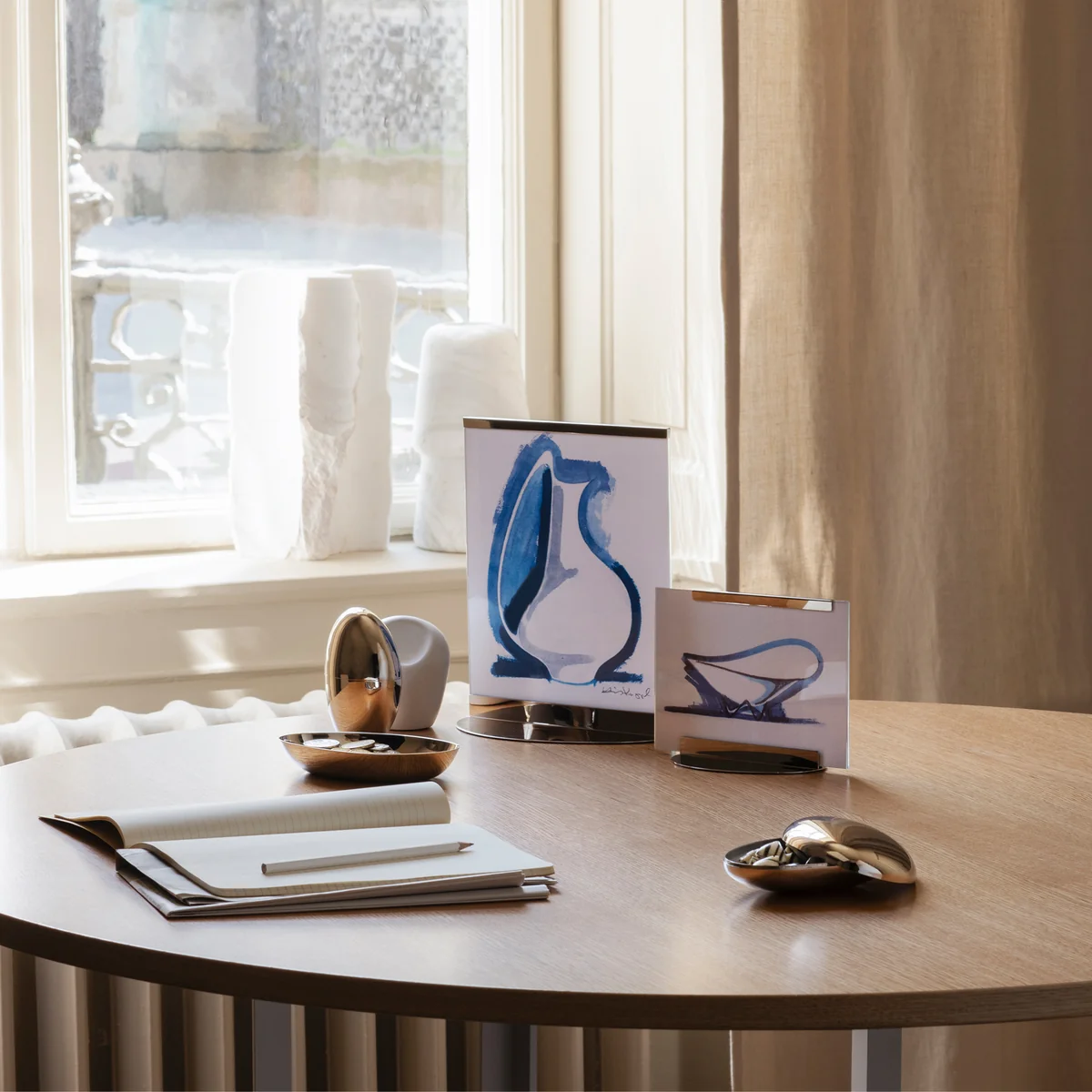 Mit dem Sky Bilderrahmen verleiht Georg Jensen einem klassischen Bilderrahmen einen modernen Look. Das Bild wird einfach zwischen zwei Glasscheiben platziert, die von Edelstahl-Elementen gehalten werden. Je nachdem, ob das Bild im Hochformat oder Querformat aufgenommen wurde, können die Scheiben entsprechend ausgerichtet werden. Wird das Bild zudem dem Bilderrahmen genau angepasst, erweckt es den Eindruck, als würde es schweben.