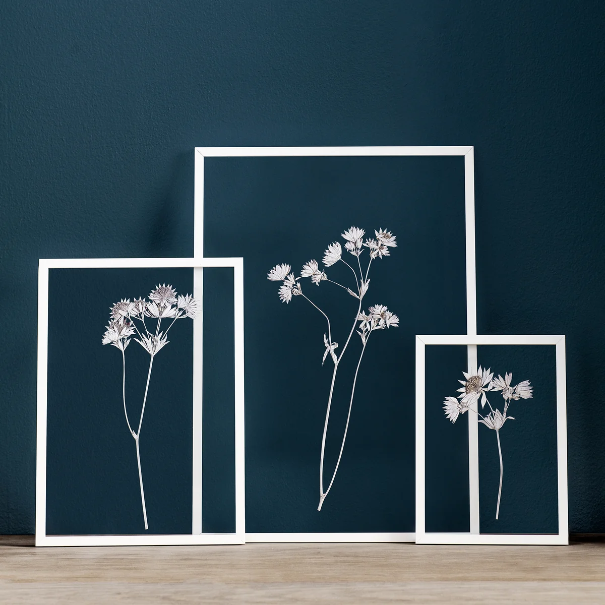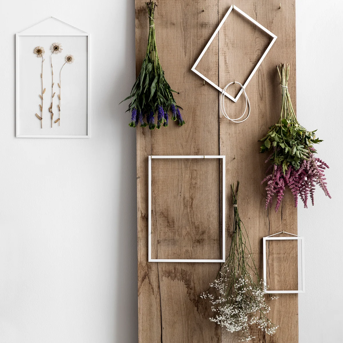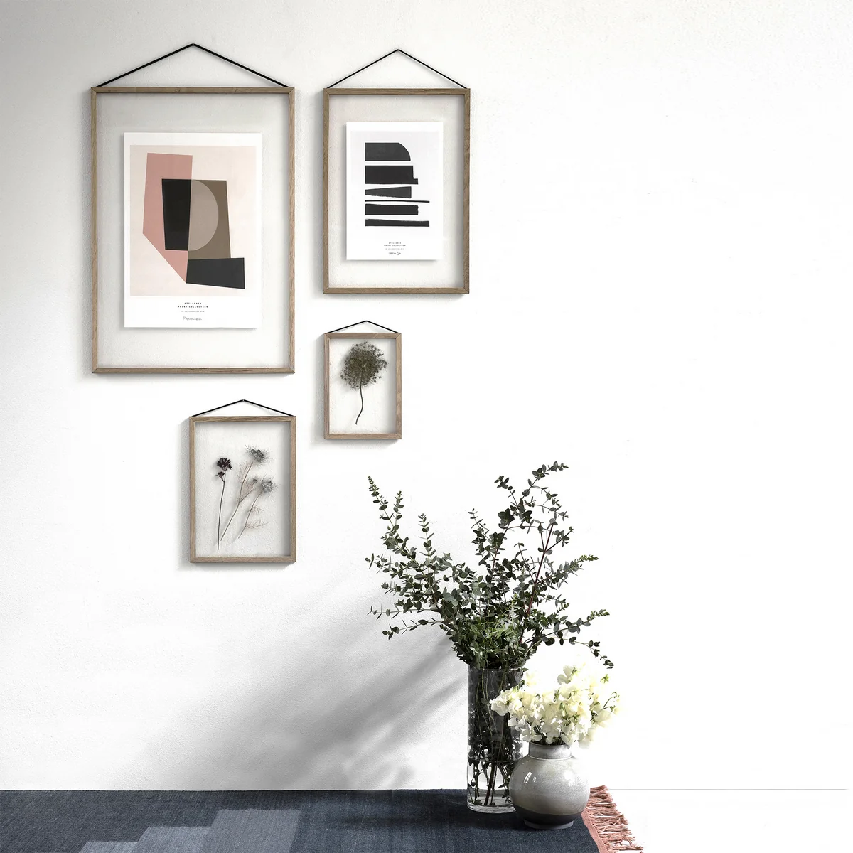 Mit den Frame Bilderrahmen von Moebe lassen sich die heimischen vier Wände ganz individuell gestalten. Die Rahmen bestehen aus pulverbeschichteten Aluminium oder Holz sowie zwei Acryl Glasscheiben. Dabei wurde auf eine klassische Rückwand verzichtet, was die Gesamterscheinung luftig-leicht und transparent macht. Kleinere Drucke oder Fotos scheinen im Frame Rahmen zu schweben und von einem durchsichtigen Passepartout umgeben zu sein. Auch getrocknete Blumen, Selbstgemaltes oder Postkarten finden zwischen den Scheiben ihren Platz und können stilvoll in Szene gesetzt werden.