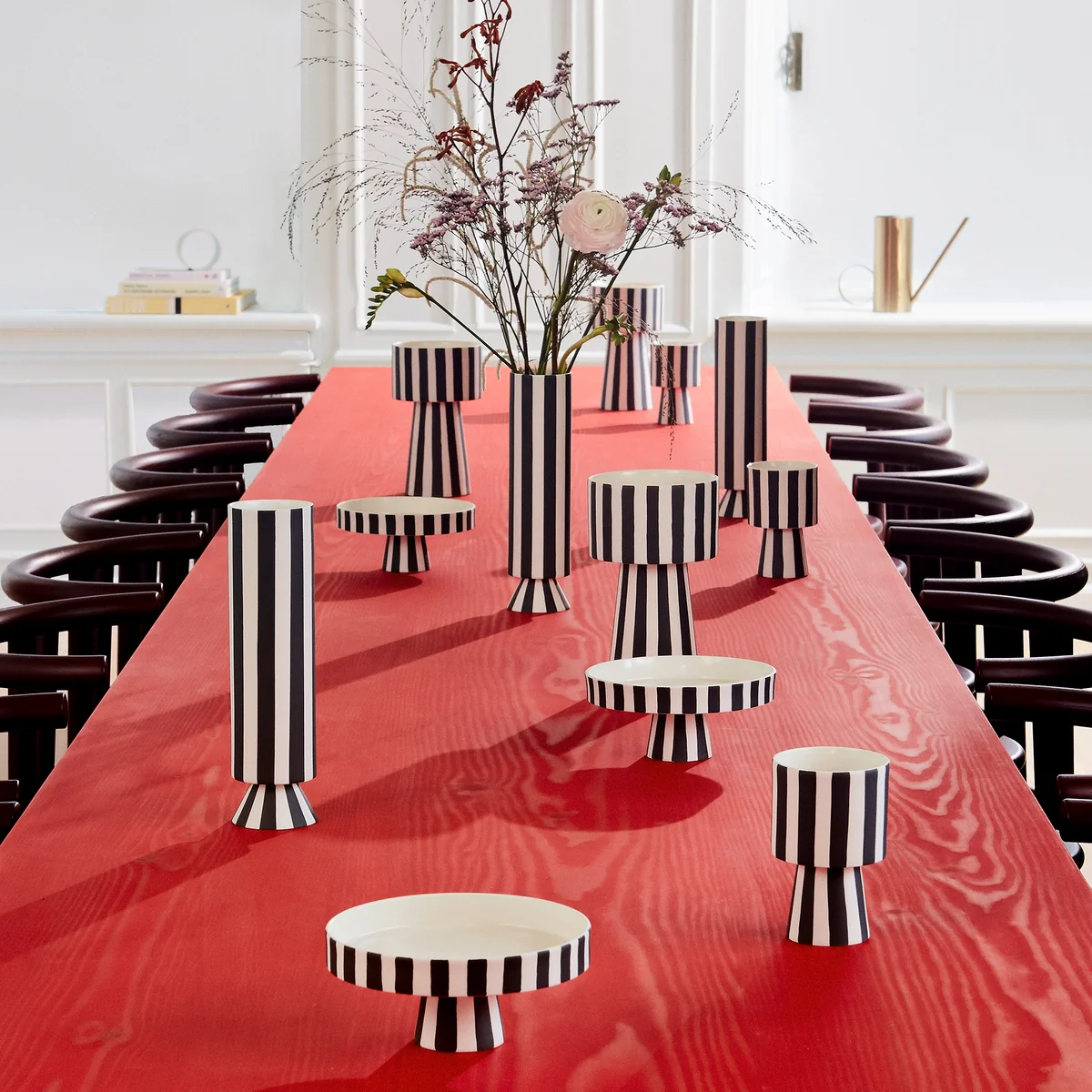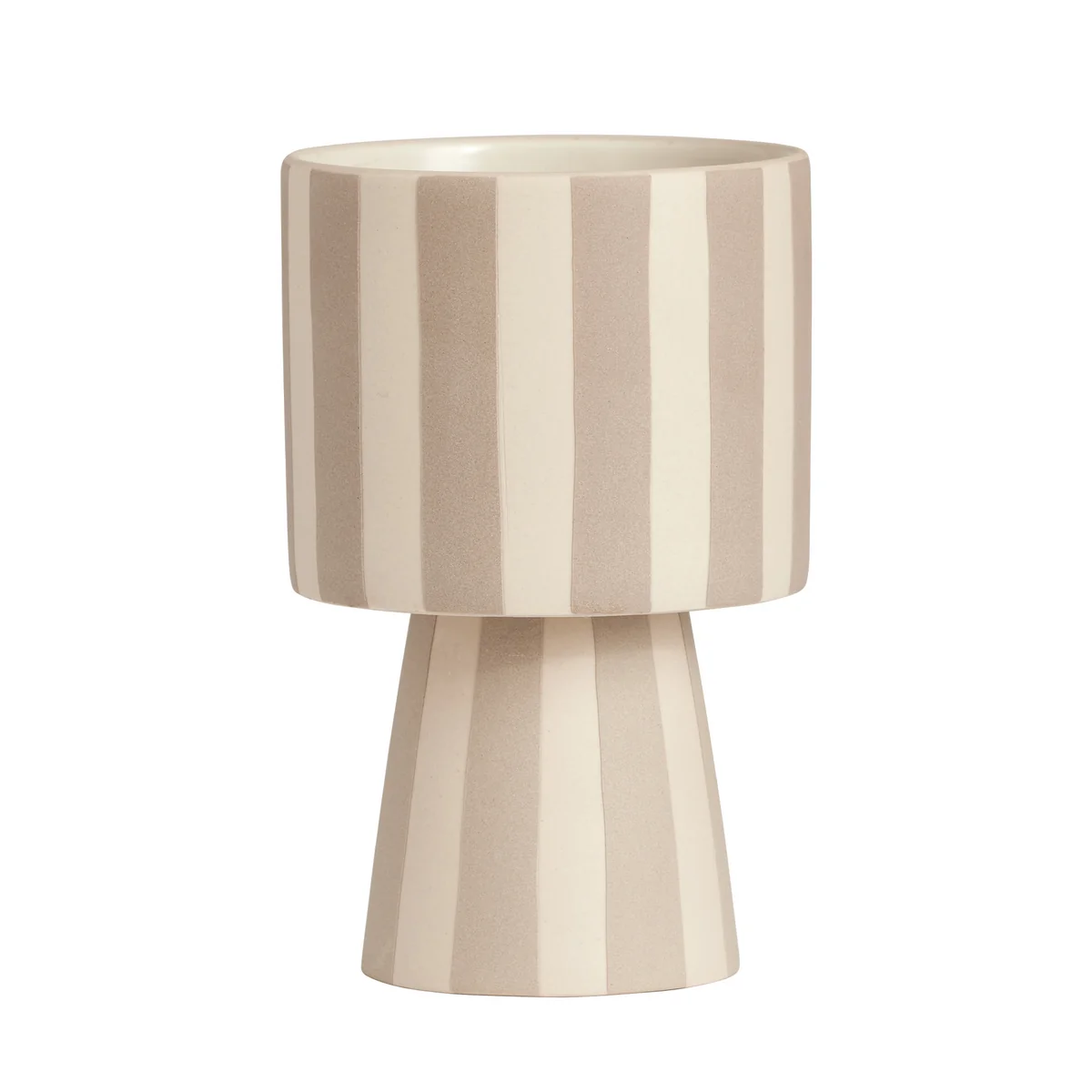 Der Toppu Übertopf von OYOY setzt Blumen und Pflanzen gekonnt in Szene. Sein Streifenmuster setzt stilvolle und grafische Akzente im Wohnbereich und ist auch ohne Bepflanzung ein dekorativer Hingucker im Regal oder auf dem Beistelltisch. Die aussergewöhnliche, geometrische Form hilft dabei Pflanzen und Blumen auf elegante und moderne Weise zu präsentieren.