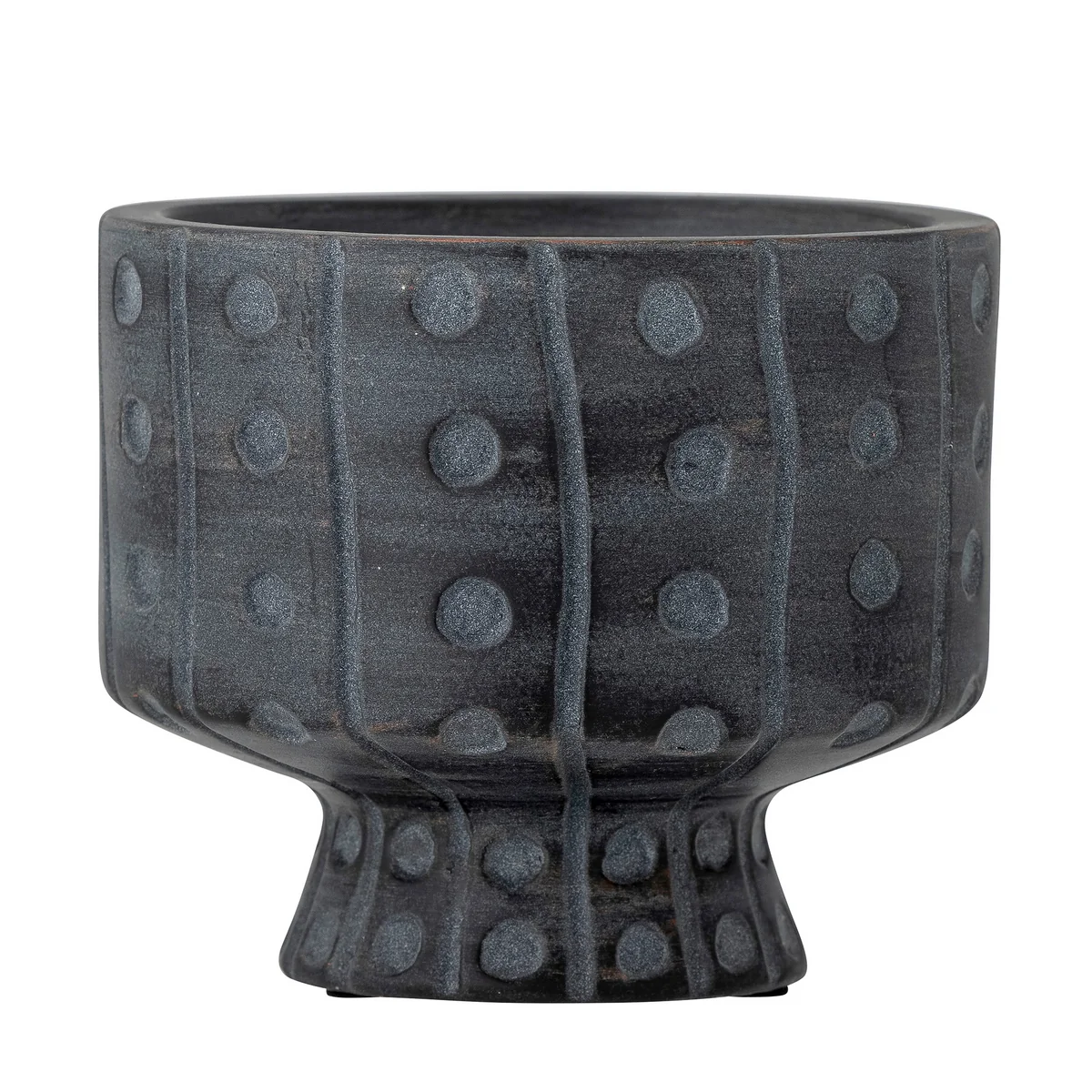 Der Blumentopf Rane von Bloomingville wird aus Keramik mit einer modernen, matten Oberfläche hergestellt. Der Blumentopf ist mit einem schönen Muster aus geprägten Punkten verziert, das sich vom Boden bis zur Spitze erstreckt. Seine dunkelgraue Farbe wird mit jeder Blume oder Pflanze, die darin steht, kontrastieren.