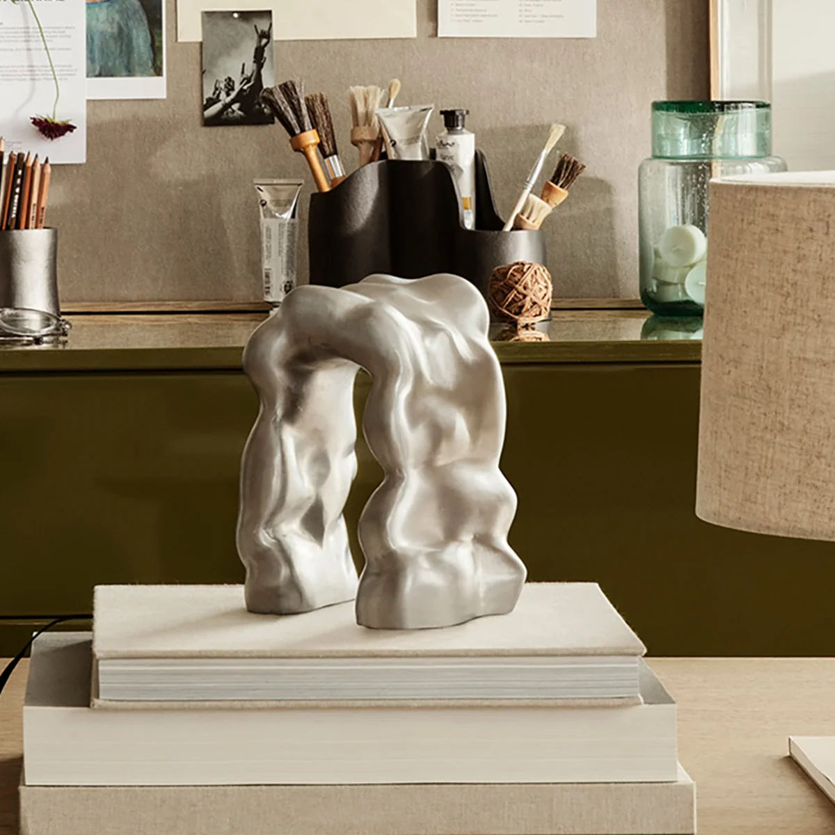 Die Morf Skulptur und Buchstütze von Ferm Living wird aus recyceltem Aluminium gefertigt und bringt Fantasie in den Wohnraum. Inspiriert von der Mystik und den organischen Formen der Natur, entstand die Morf Skulptur im Rahmen der Zusammenarbeit mit dem norwegischen Künstler Øfstedal Eng. Die Skulptur erhebt, mit der unkontrollierbaren Formation, einen sehr hohen ästhetischen Anspruch, welcher die Skulptur zu einem wahren Blickfang macht, egal, ob sie als Buchstütze auf dem Regal steht oder als dekoratives Stillleben im Rampenlicht.