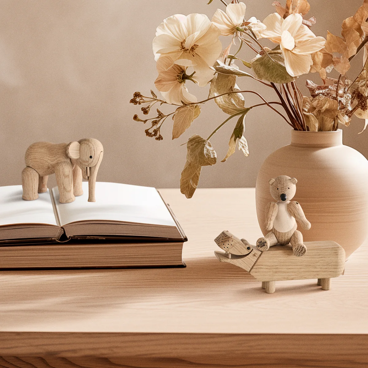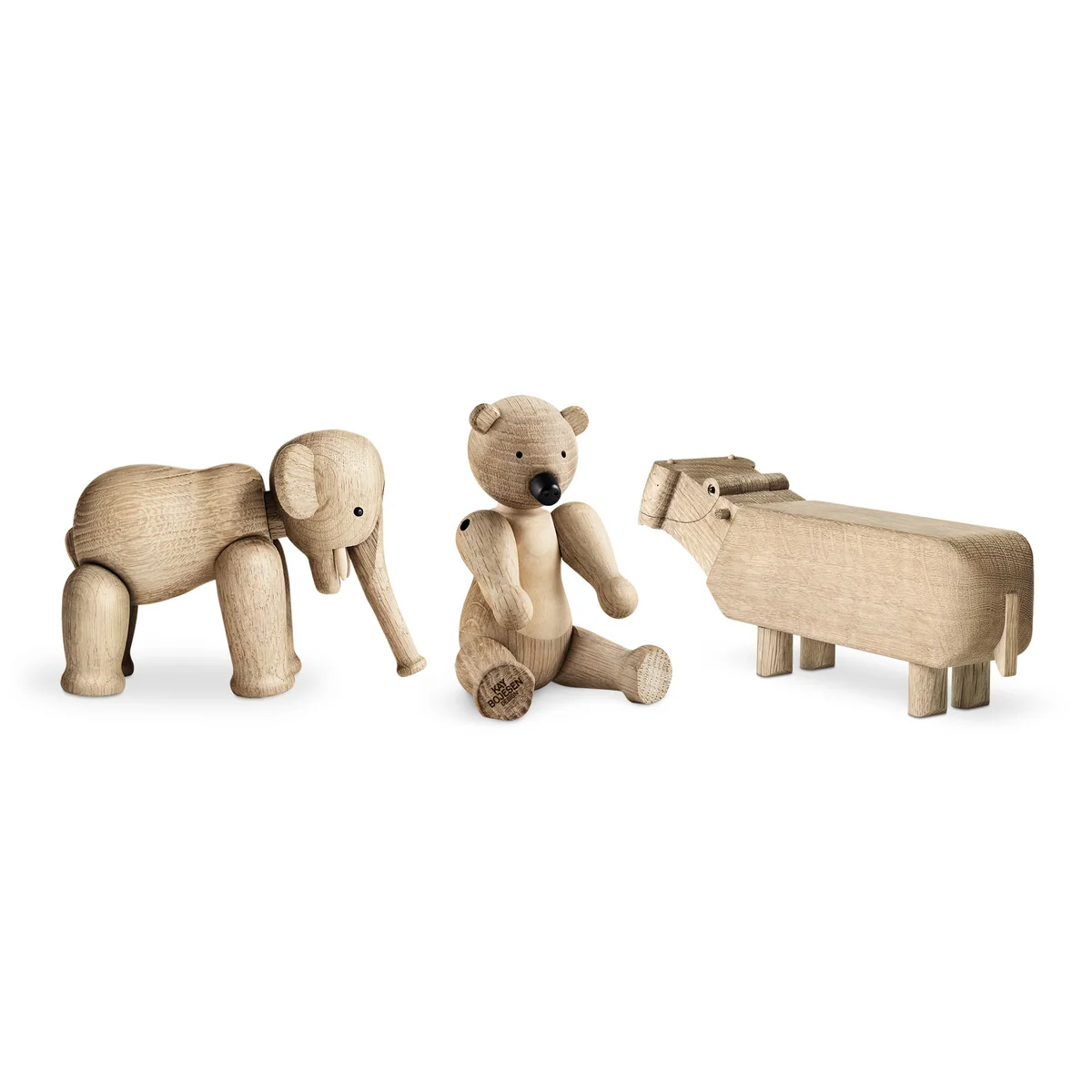 Das Lilliput-Set von Kay Bojesen besteht aus drei liebevoll gestalteten Holzfiguren, die durch ihre klaren Linien und weichen Formen bestechen. Jede Figur ist handgefertigt aus hochwertigem Holz und sorgfältig handbemalt, was ihnen einen einzigartigen Charakter und eine warme Ausstrahlung verleiht. Die Kombination aus natürlichen Materialien und fröhlichen Farben macht diese Figuren zu einem perfekten Beispiel für Kay Bojesens Designphilosophie.