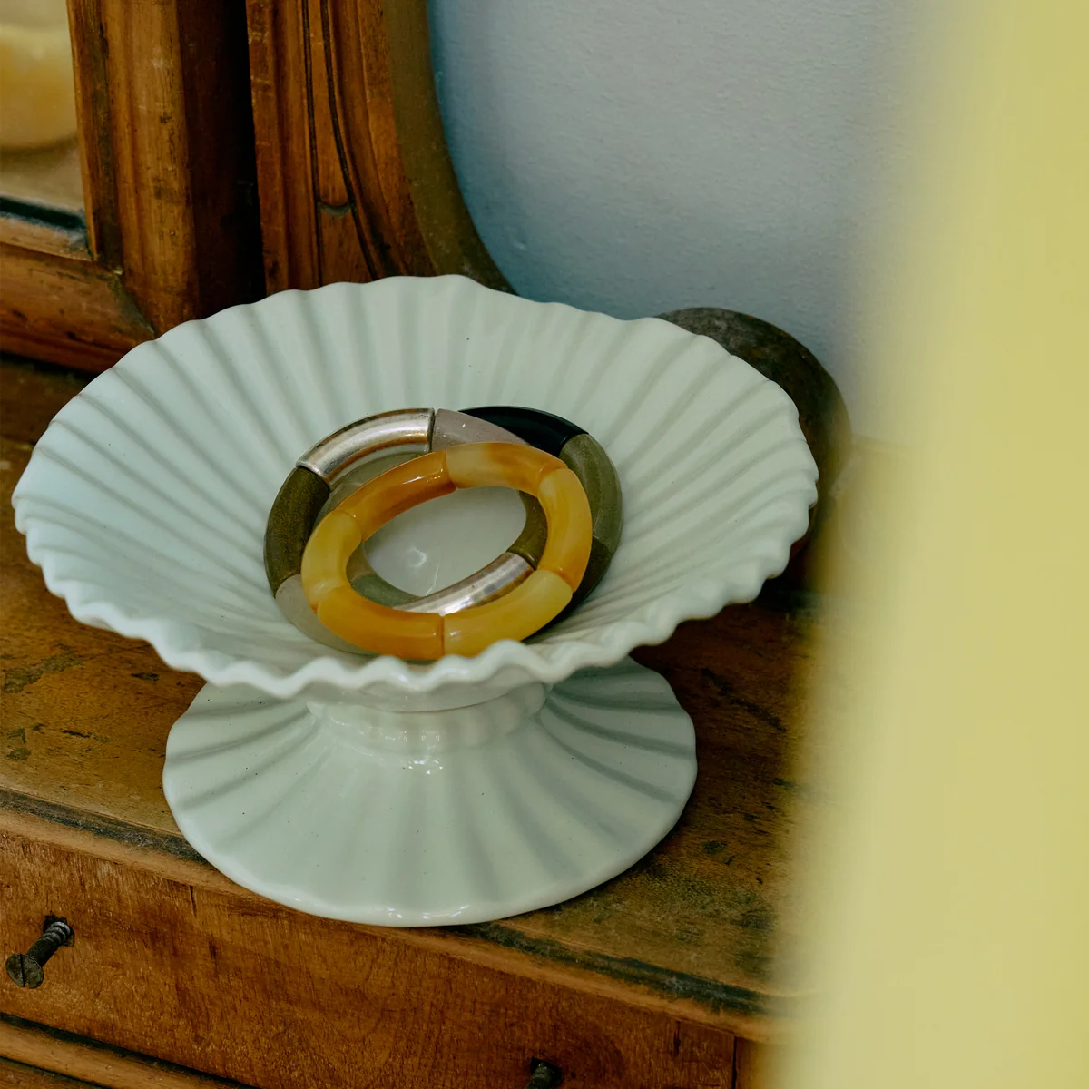 Die New Classics Ribble Schale mit Fuss von HKliving überzeugt durch ihre klare Formensprache und eine ruhige, matte Glasur. Mit ihrer erhöhten Position und der weich modellierten Silhouette wirkt sie wie ein Designobjekt und eignet sich gleichermassen zum Servieren, Dekorieren oder stilvollen Arrangieren kleiner Gegenstände. Das Modell bringt dezente Farbe in den Raum und fügt sich harmonisch in verschiedene Interieurs ein – zeitlos, funktional und mit einem Hauch skulpturaler Eleganz.