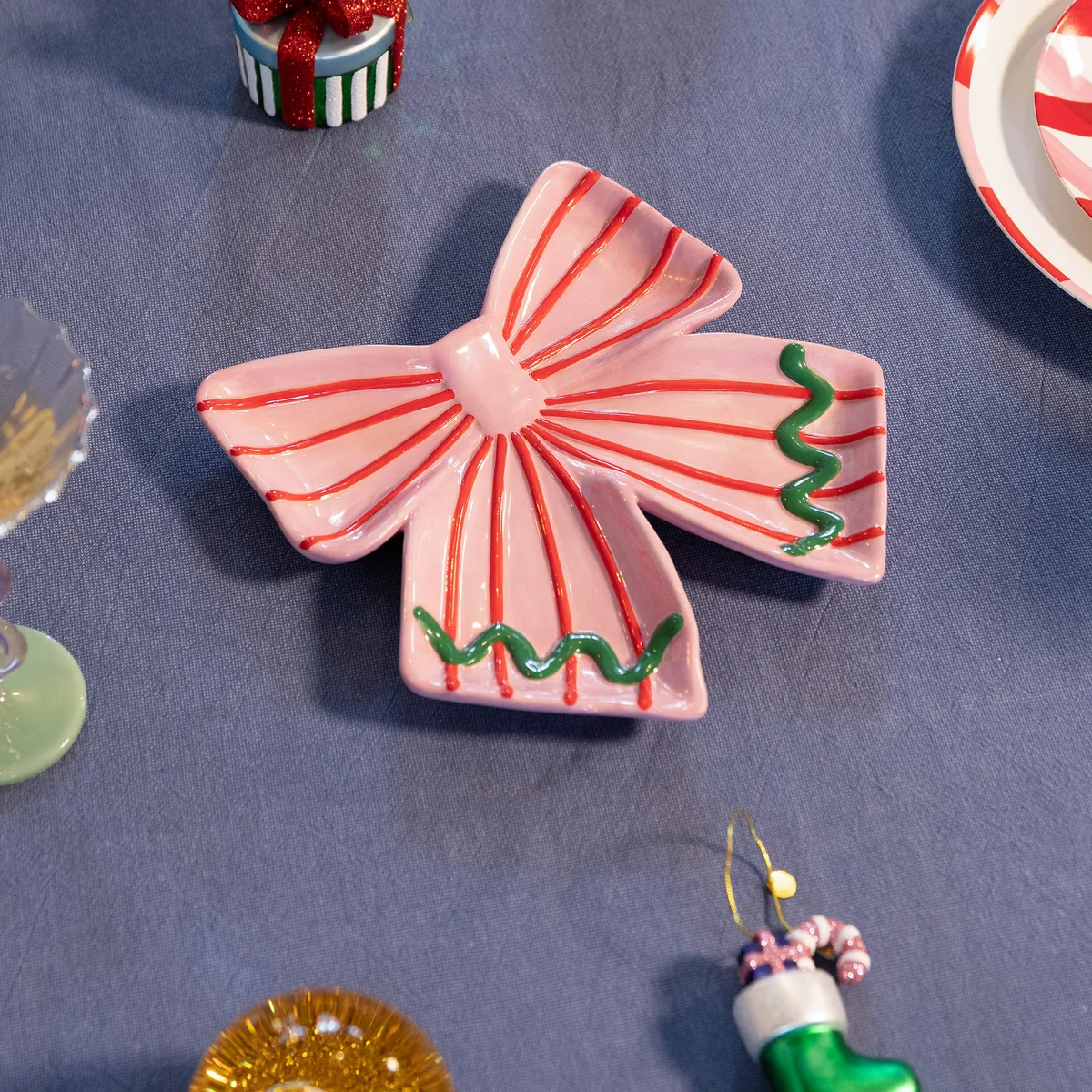 Die Ribbon Dekoschale bringt mit ihrem zarten Schleifendekor eine charmante Note auf den gedeckten Tisch. Jeder Teller wird aus Keramik gefertigt und von Hand bemalt – so entsteht ein einzigartiges Unikat mit feinen Details und individueller Ausstrahlung. Ob für besondere Anlässe oder den Alltag: Der Teller verbindet Funktionalität mit dekorativer Leichtigkeit.