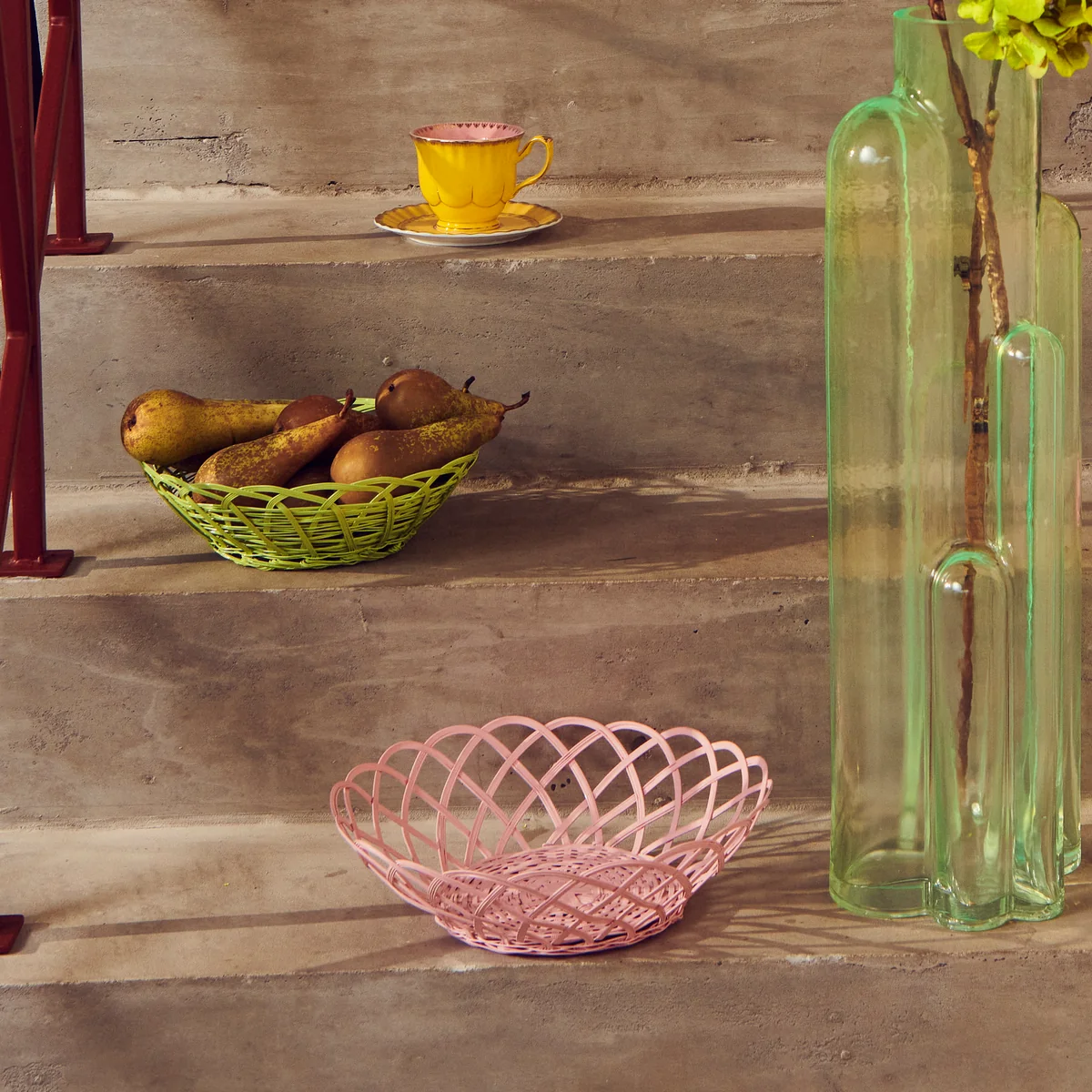 Der Bakkie Korb aus dem niederländischen Hause POLSPOTTEN ist mit seinem dekorativem, farbenfrohen und verspielten Design ein wunderbar fröhliches Wohnelement. Die geflochtene Optik aus mattem, pulverbeschichteten Metall ist eine Anspielung an die echte Handwerkskunst des Flechtens. Die Materialwahl des Metalls bietet eine äusserst hohe Haltbarkeit. Der Bakkie Korb kann wunderbar genutzt werden, um allerlei Kleinigkeiten drin zu lagern.