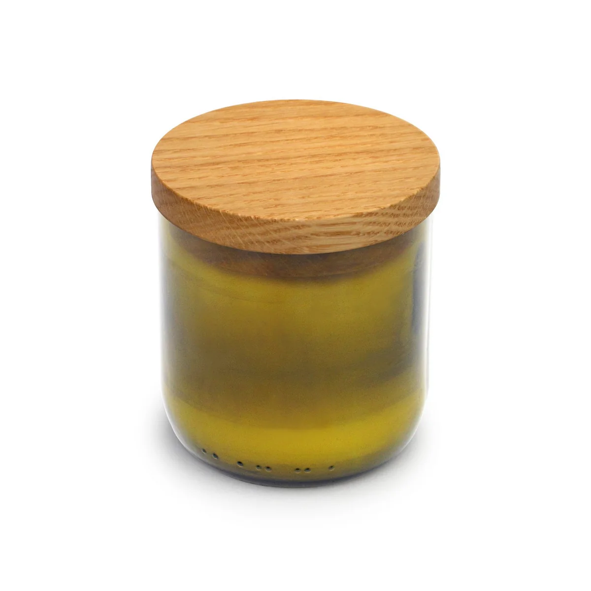 - Glas aus recycelten Flaschen & Eichenholzdeckel