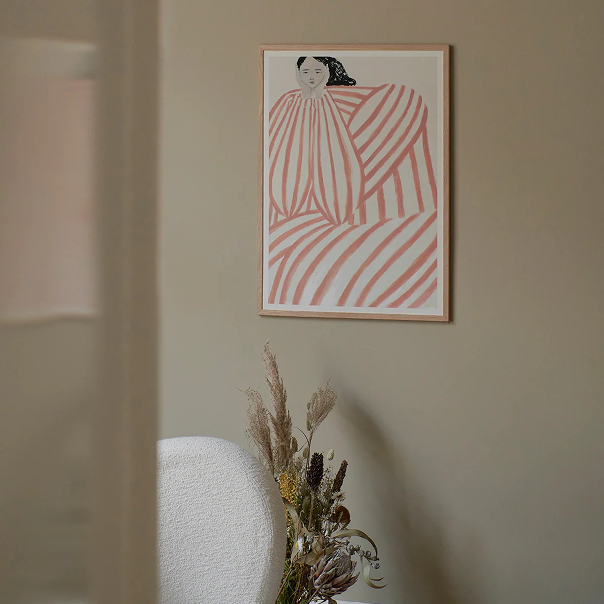 Der Still Waiting Fine-Art-Giclée-Druck von Sofia Lind für The Poster Club begeistert mit seiner grossartigen Drucktechnik. Das Streifen-Motiv einer wartenden Frau besticht hierbei mit seiner Tiefe an intensiven Farbnuancen. In Verbindung mit dem hochwertigen Naturpapier, werden die Archivierung der Farben und eine maximale Langlebigkeit garantiert.