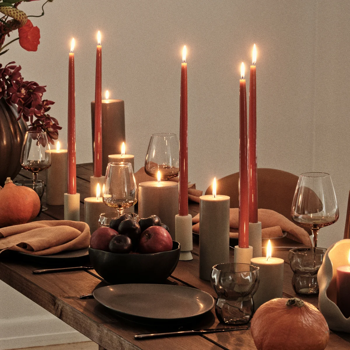 Die im Viererpack verkauften Kerzen haben eine Brenndauer von bis zu 10,5 Stunden und sorgen so für eine lange Atmosphäre und Wärme. Perfekt, um eine gemütliche Atmosphäre zu schaffen oder einen stilvollen Akzent Zuhause zu setzen.