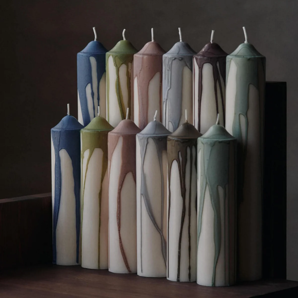 Die Dryp Blockkerze von Ferm Living ist mehr als ein klassisches Wohnaccessoire – sie ist ein dekoratives Statement. Gefertigt aus reinem Stearin, wird jede Kerze von Hand mit einer kontrastierenden Farbe übergossen, die sich wie ein lebendiger Tropfenfluss über die cremefarbene Basis ergiesst. So entsteht ein spannendes Spiel aus Farbe, Textur und Form, das sowohl einzeln als auch in Gruppenarrangements Wirkung zeigt. Ein künstlerischer Blickfang für jedes moderne Interieur.