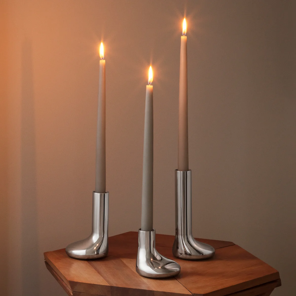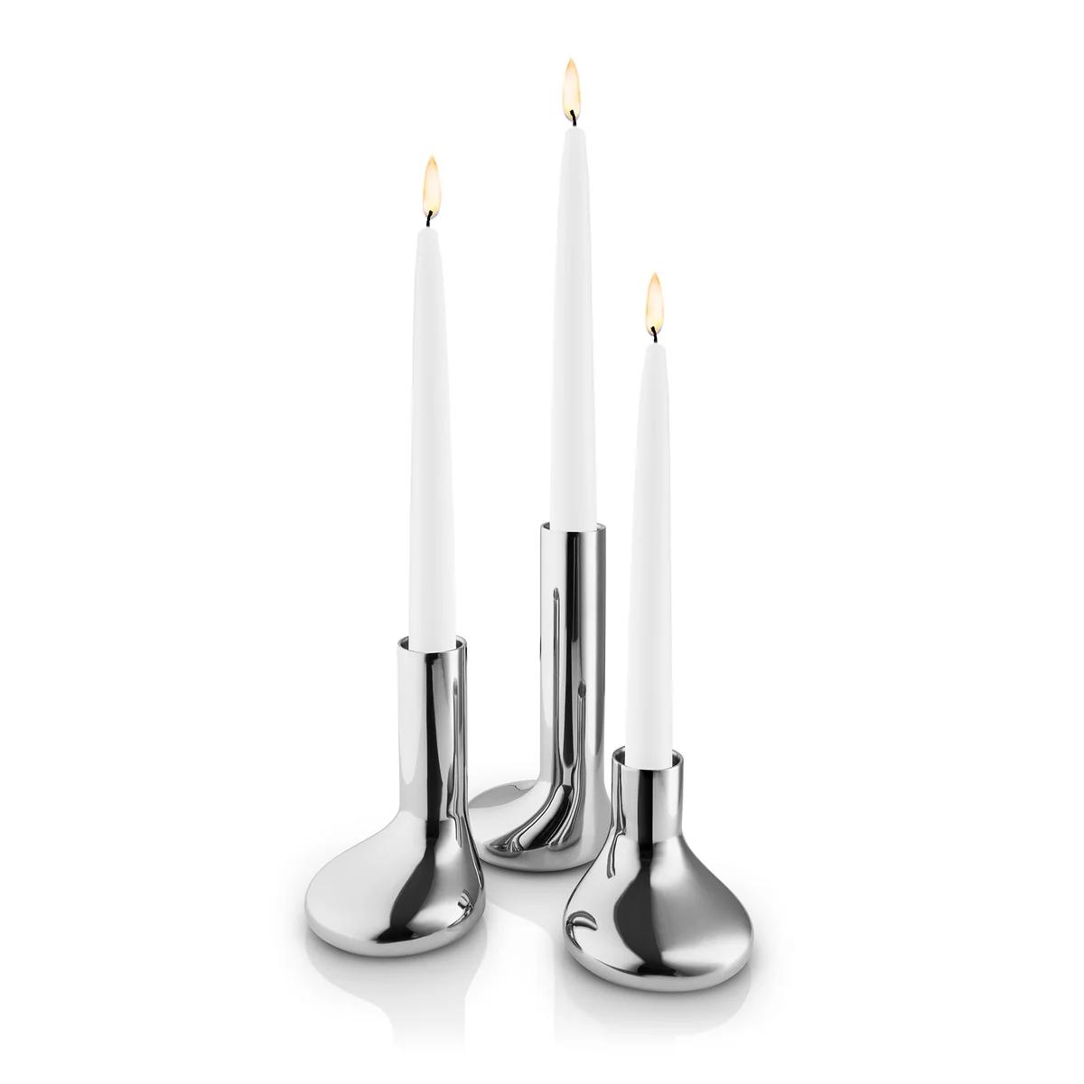 Mit dem charmanten Mellow Kerzenhalter von Eva Solo kann dem Zuhause eine besondere Note verliehen werden. Die skulpturale und verspielte Form dieser kleinen Kerzenhalter-Familie bringt einen Hauch von Persönlichkeit in jeden Raum und auf jede festlich gedeckte Tafel. Das reflektierende Licht des Kerzenscheins auf der glänzenden Oberfläche erzeugt ein zauberhaftes, tanzendes Lichtspiel.