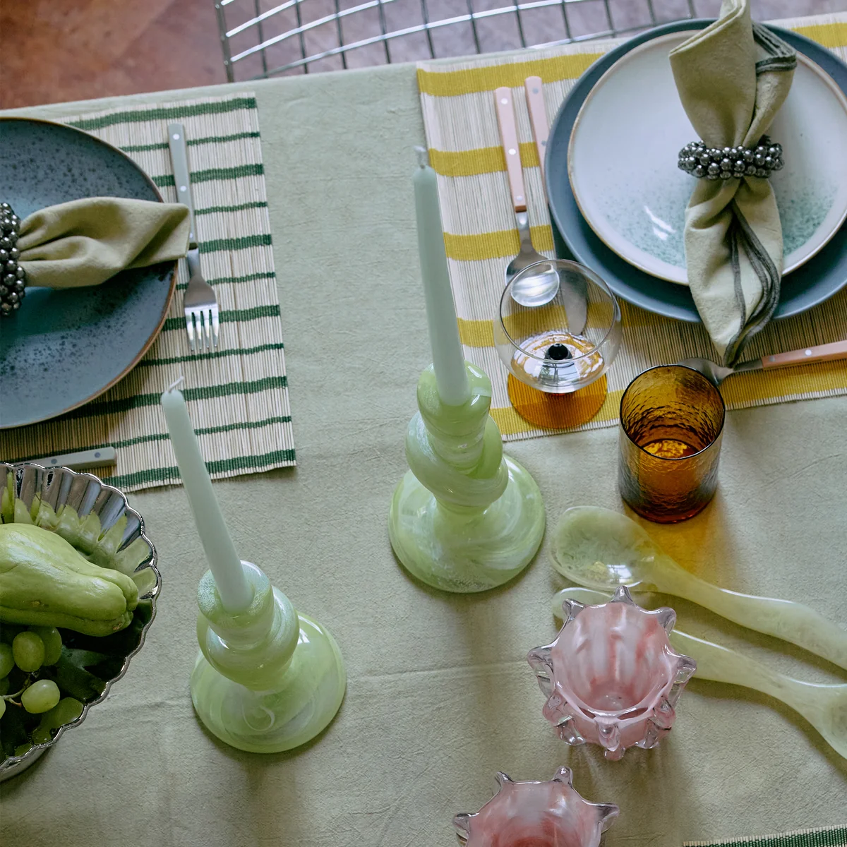 Der Knotted Kerzenhalter von HKliving verbindet dekorative Wirkung mit funktionalem Design. Gefertigt aus Glas mit geschwungener, gedrehter Form, erzeugt er aus jeder Perspektive ein Gefühl von Bewegung. Die harmonische Farbgebung unterstreicht den künstlerischen Charakter des Objekts, das als stilvoller Blickfang auf Tischen, Sideboards oder Regalen überzeugt. Ob mit Kerze oder solo – dieser Halter bringt Designqualität ins Detail.