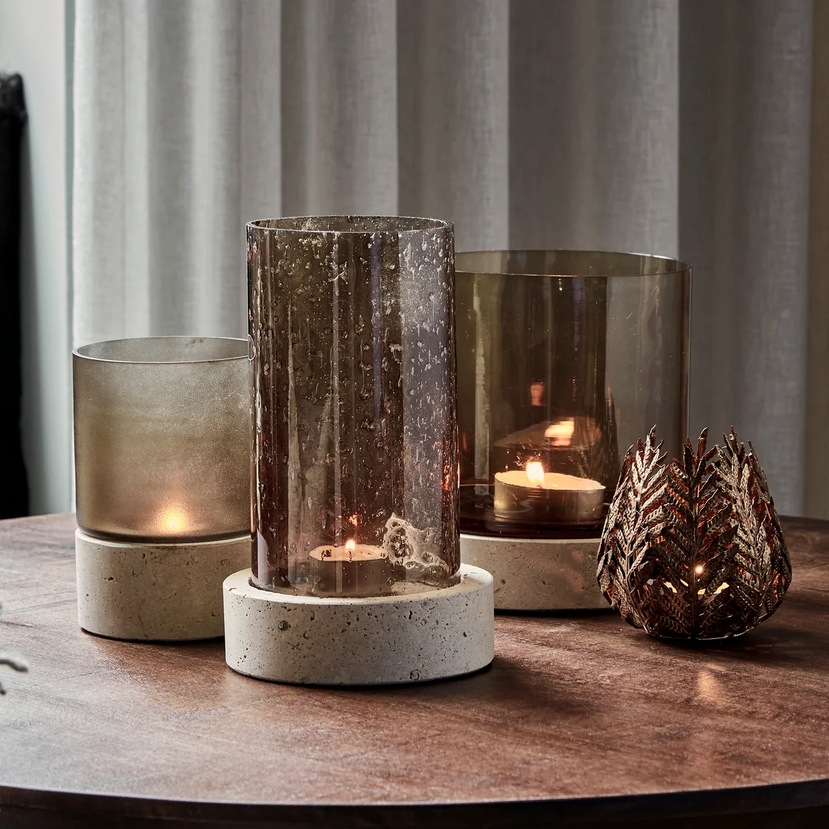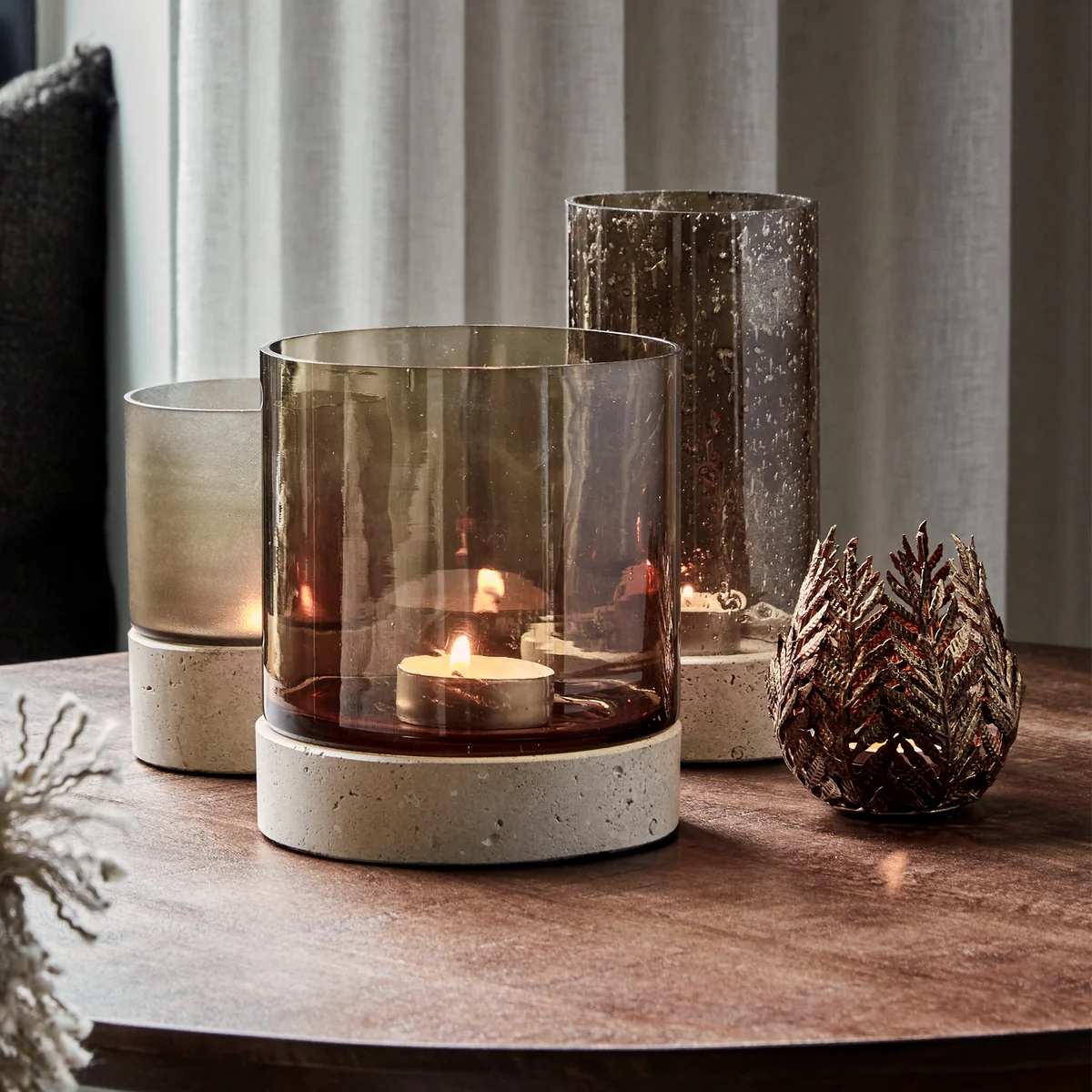 Der Rivo Kerzenständer von House Doctor vereint modernes Design mit natürlicher Eleganz. Der schlanke, aus Glas gefertigte Ständer setzt die Kerze stilvoll in Szene, während die Base aus Travertin dem Ensemble eine robuste, erdige Note verleiht. Diese Kombination aus transparentem Glas und dem warmen, strukturierten Stein schafft ein harmonisches Gleichgewicht zwischen Leichtigkeit und Stabilität. Der Rivo Kerzenständer ist nicht nur ein funktionaler Gegenstand, sondern auch ein Kunstwerk, das jedem Raum eine raffinierte und zeitlose Atmosphäre verleiht.