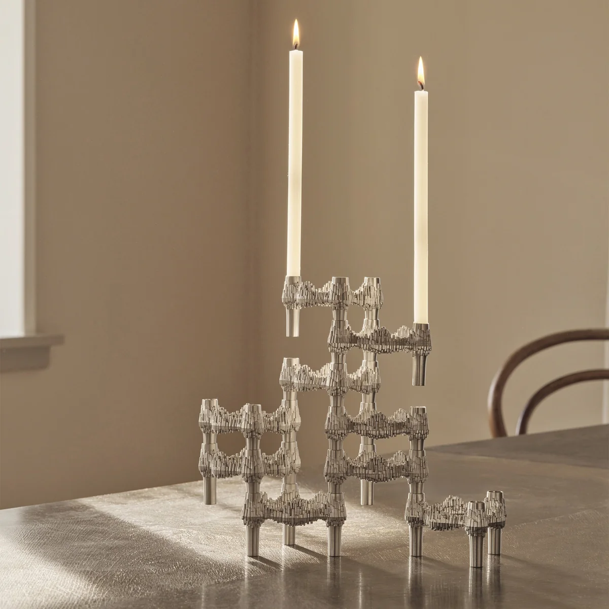 Das Besondere: Jeder Kerzenhalter lässt sich stapeln, erweitern und beliebig kombinieren – zu kleinen Skulpturen oder grossflächigen Lichtinstallationen. Ob einzeln, zu dritt oder als kreative Lichtskulptur: Der Quist Kerzenhalter ist ein funktionales Objekt mit Sammlerwert, das kunstvolles Licht und nostalgischen Charme in moderne Wohnräume bringt.
