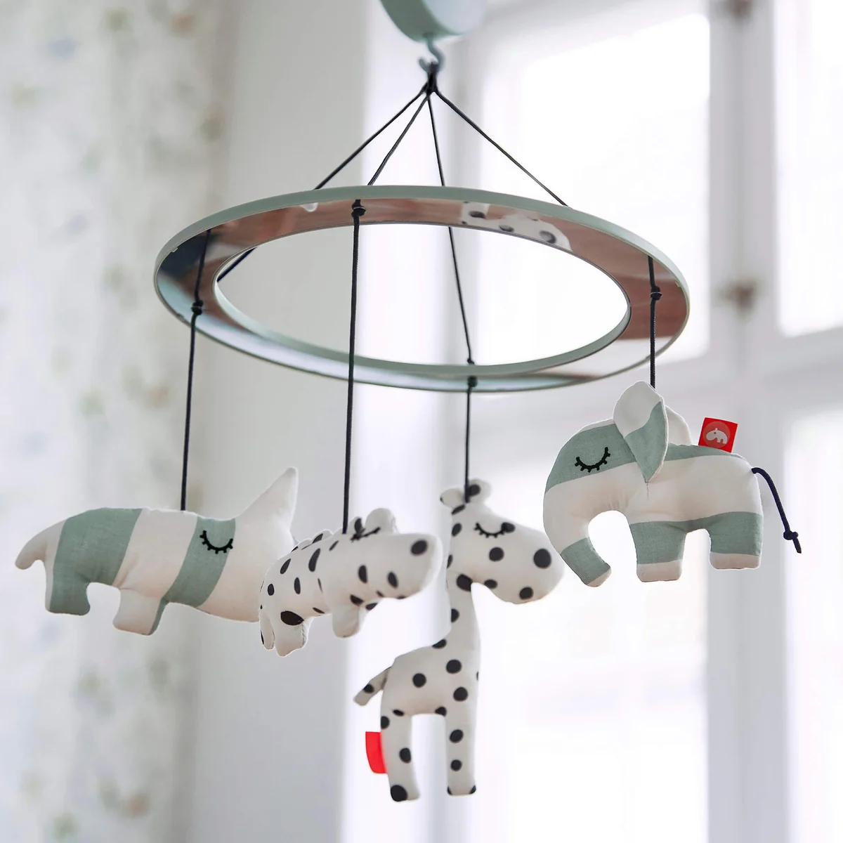 Das Musik-Mobile mit Spiegel von Done by Deer beruhigt die Kleinsten auf musikalische Weise, hilft beim Einschlummern und sorgt gleichzeitig für Spiel und Spass mit den Spiegelreflexionen. Das schlichte, monochrome Design wirkt nicht überladen fängt optimal die Aufmerksamkeit von Babys und Kleinkindern ein. Croco, Elphee, Raffi und Nozo regen mit ihren kontrastreichen Mustern die Sinne an und fördern somit die Entwicklung der Säuglinge.