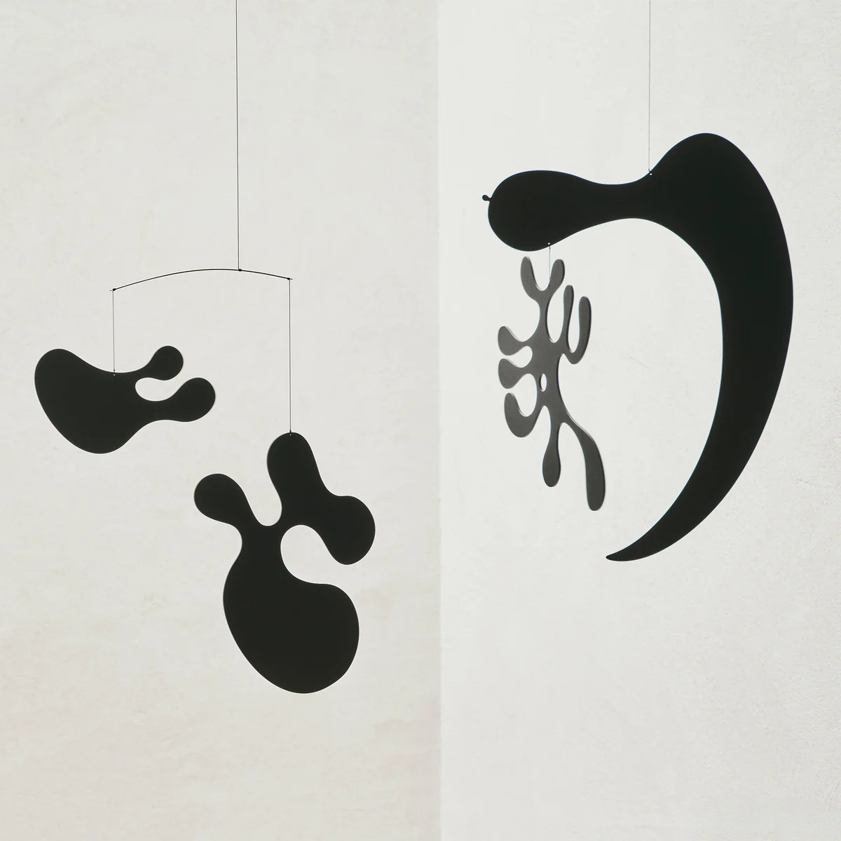 Entstanden sind die Mobiles Anfang der 1940-er Jahre bei einer Reihe von Experimenten mit Schichtholz. Charles und Ray Eames wollten damals die Technik der Schichtholzverformung vorantreiben. Die beiden fanden die zufällig entstandenen Mobiles so schön, dass sie die Modelle in ihrem Apartment in Los Angeles aufhängten.