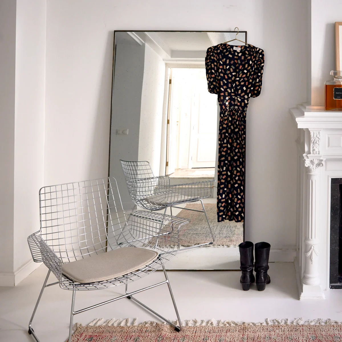 Der Bodenspiegel des niederländischen Herstellers HKliving überzeugt durch sein zeitloses Design und seine hohe Funktionalität. Er kann gleichermassen im Schlafzimmer auf den Boden gestellt sowie im Flur oder Wohnzimmer aufgehangen werden. Auch über dem Kamin fügt sich der Spiegel dank des schlanken Rahmens problemlos ein.